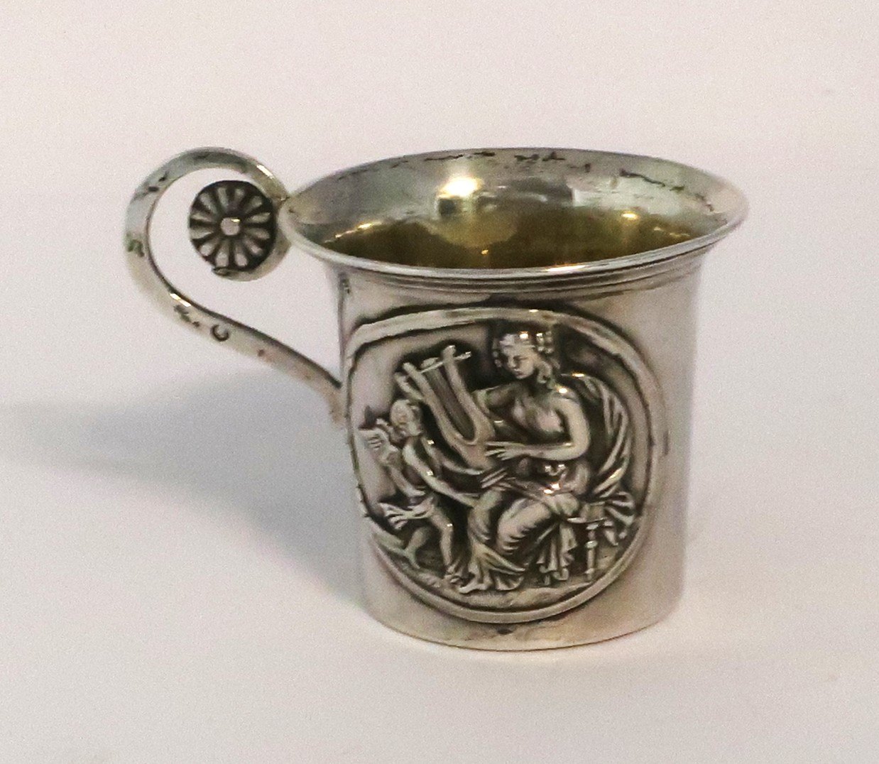 Description: Russia. Silver cup with handle (84). Height 5 cm. Diameter 5.5 cm. Produced 1835