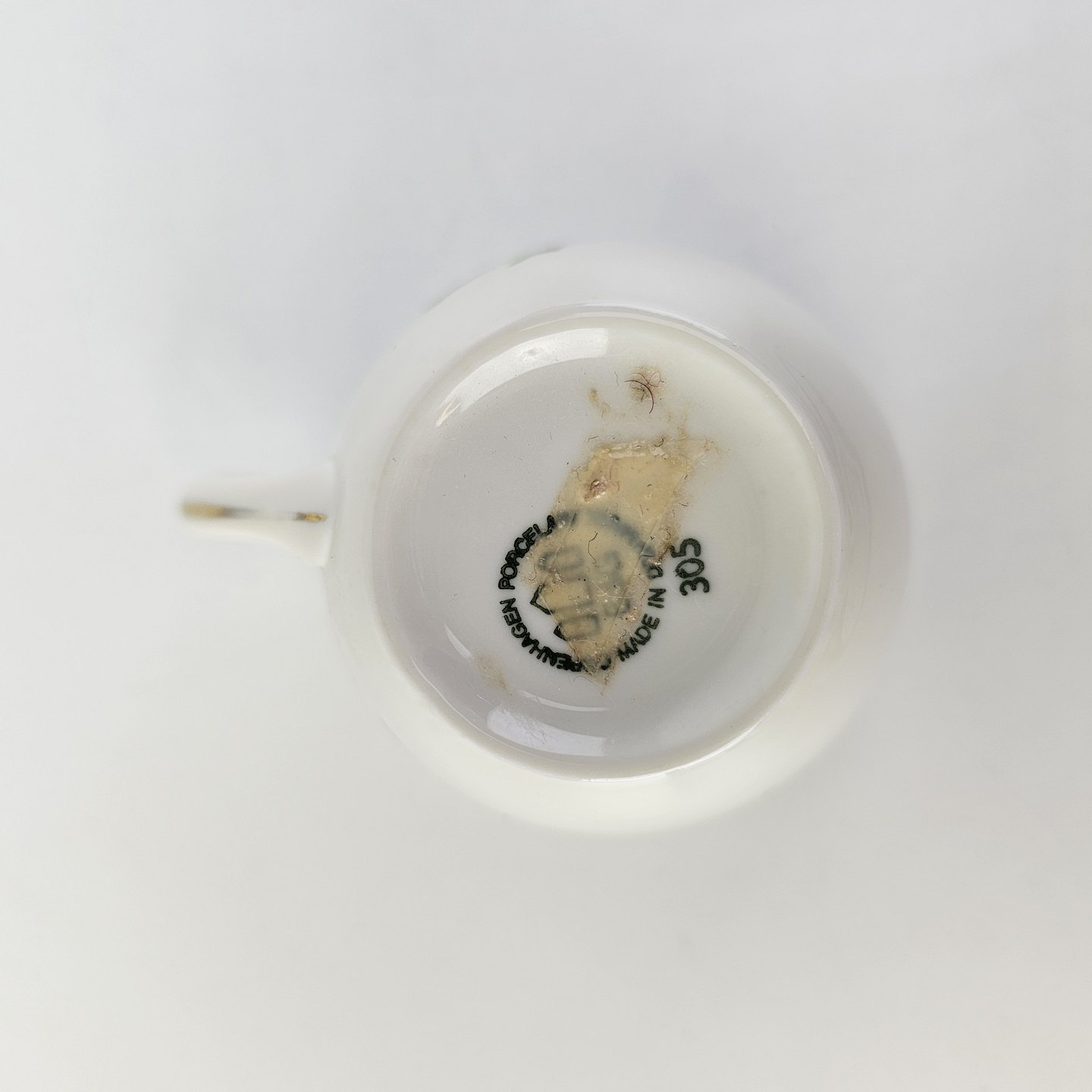 Beskrivelse: Kop og underkop i porcelæn fra stellet Balder