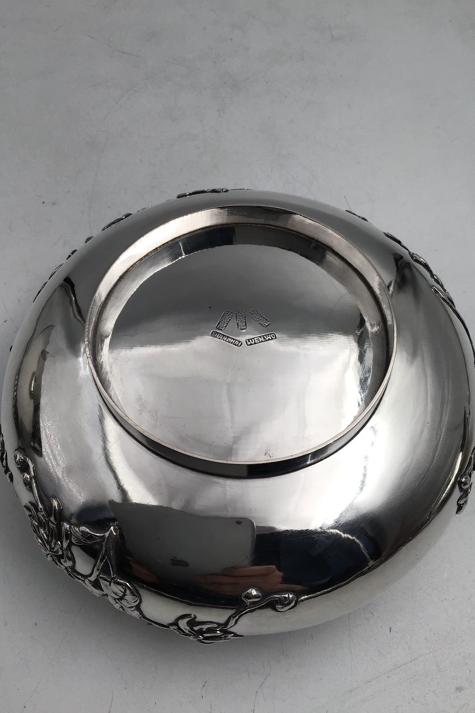 Description: Antique Chinese Sterling Silver Bowl (Luen Wo, Shanghai) Chrysantemum floral decor