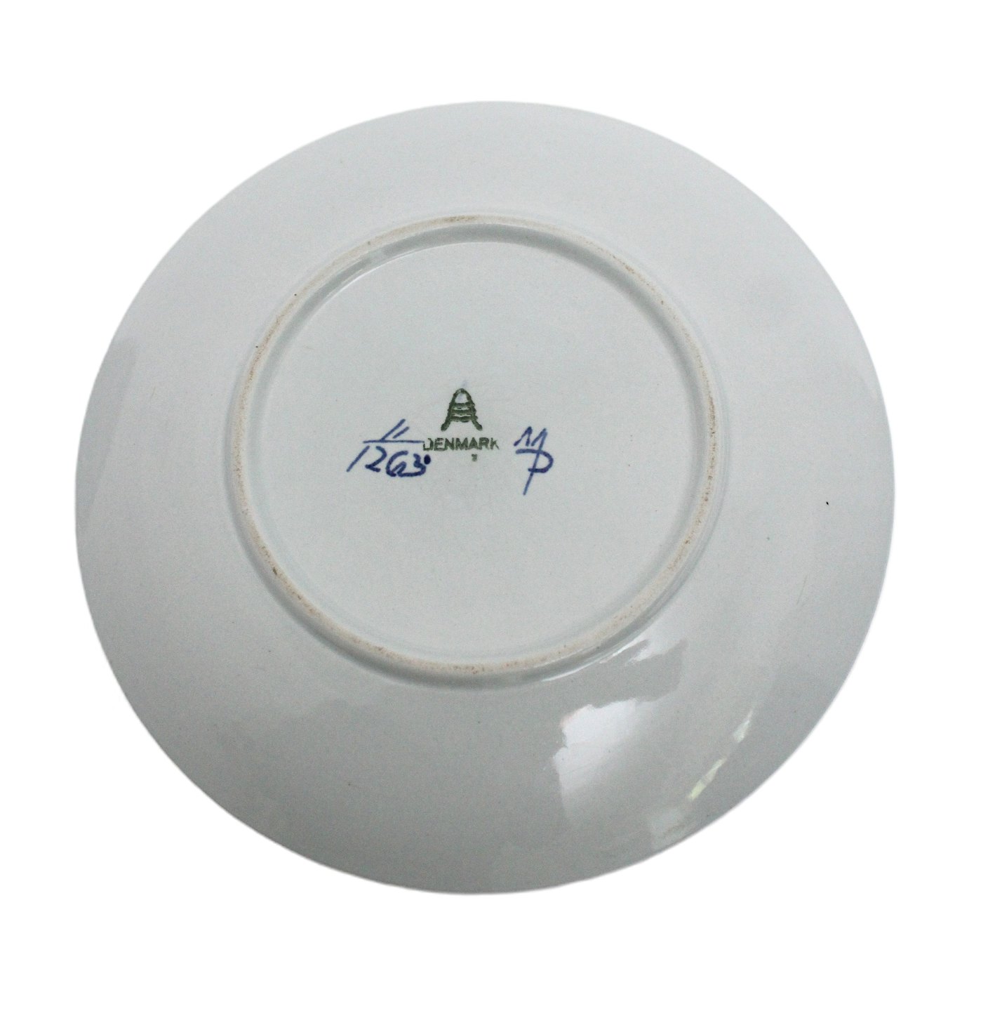 Beskrivelse: Aluminia, Tranquebar lyseblå fajance med mørkeblå tulipan og flettet bort designet af Christian Joachim. Produceret fra 1914 til 1969 på Aluminiafabrikken, derefter overgik det til Royal Copenhagen.