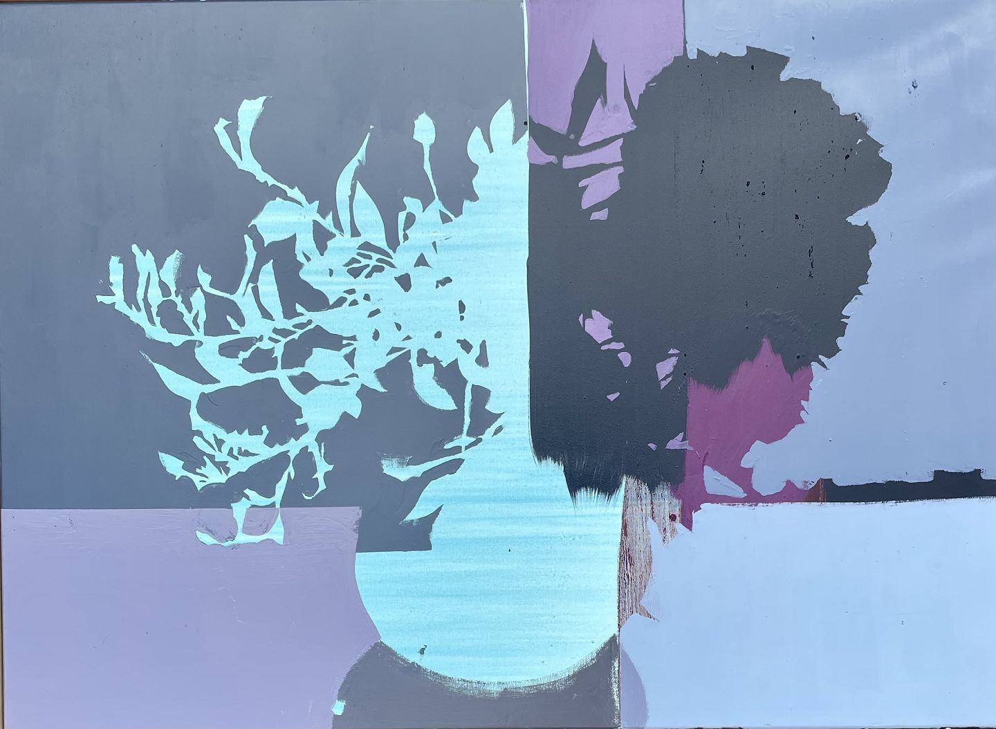 "Komposition" Akryl maleri på lærred" Maleriet er monteret i bred massiv egetræs ramme.