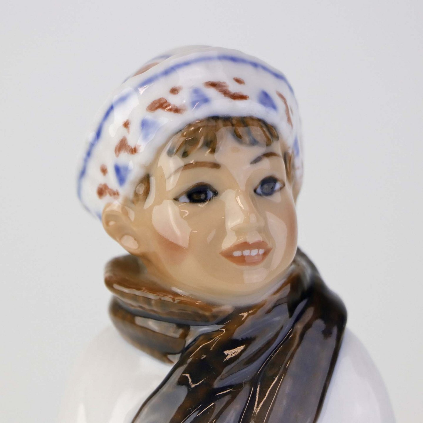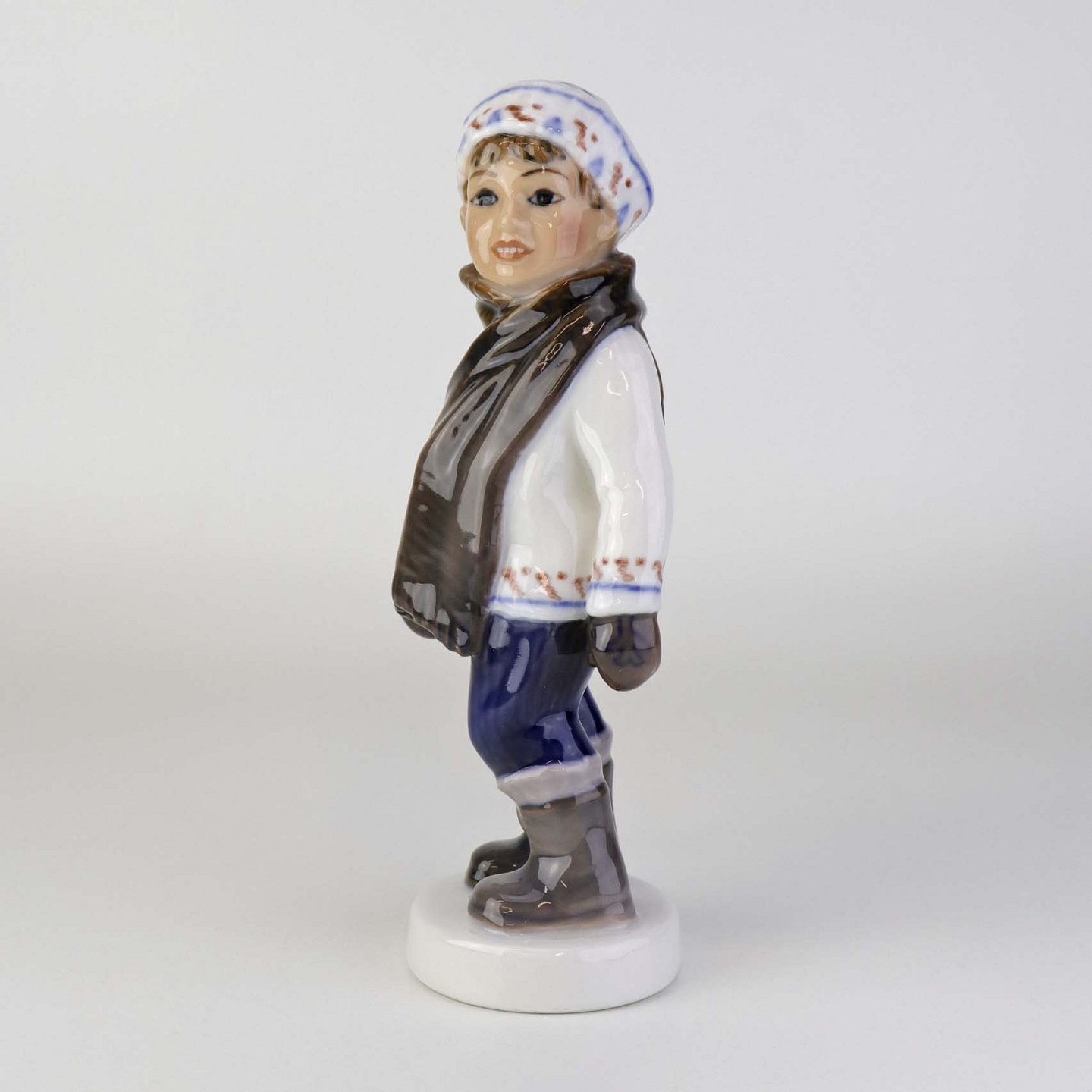 Beskrivelse: Figur i porcelæn med titlen dreng med halstørklæde. Nr. 1064