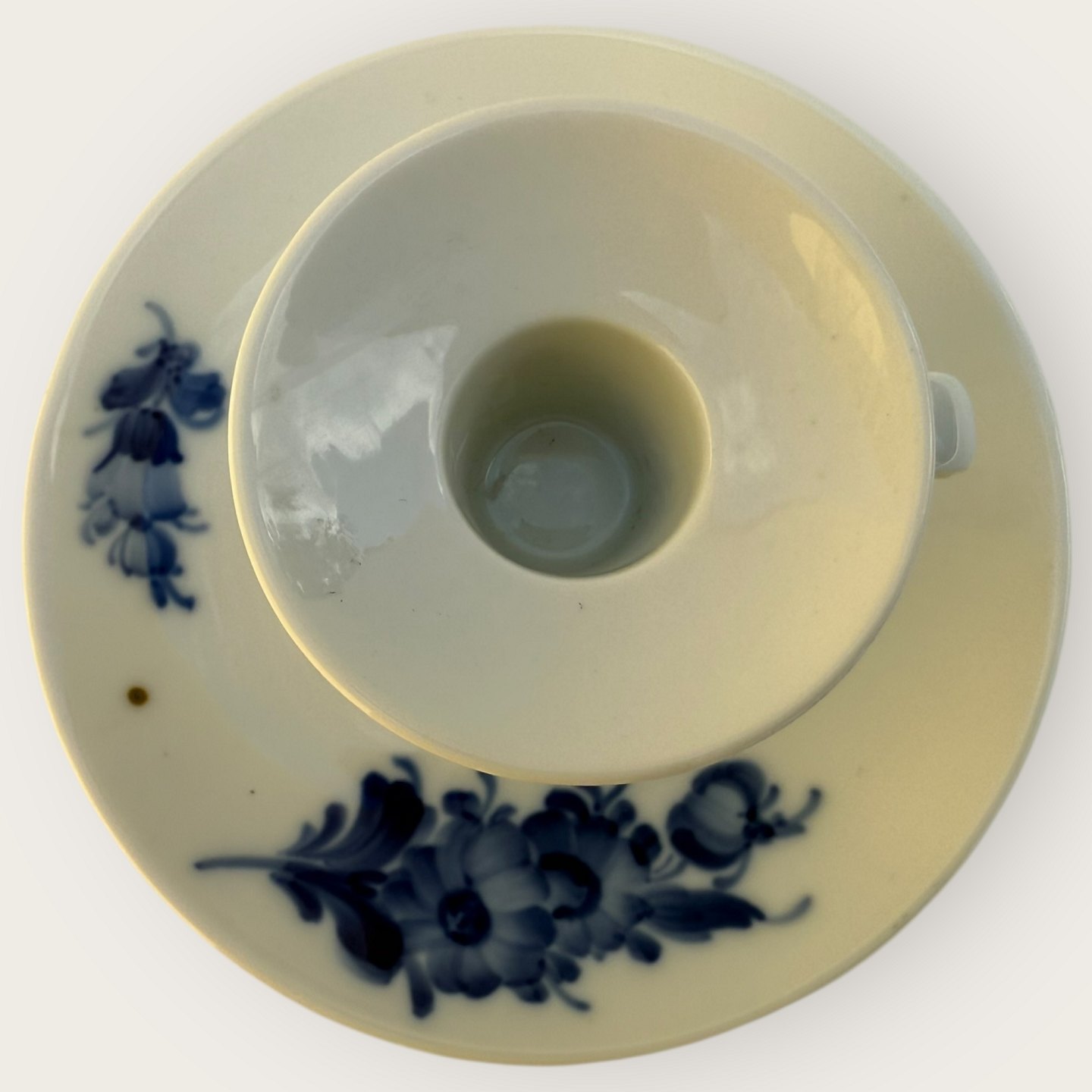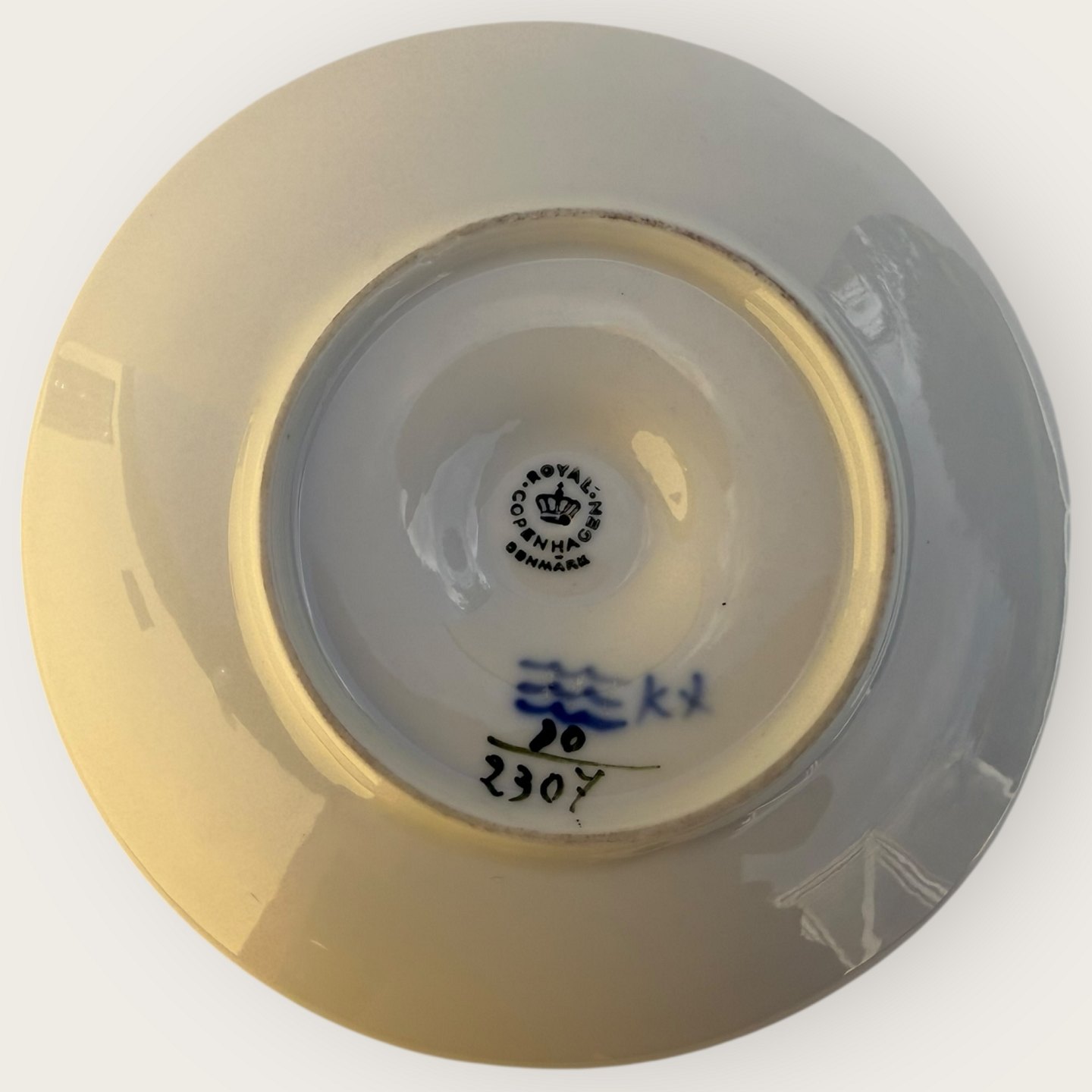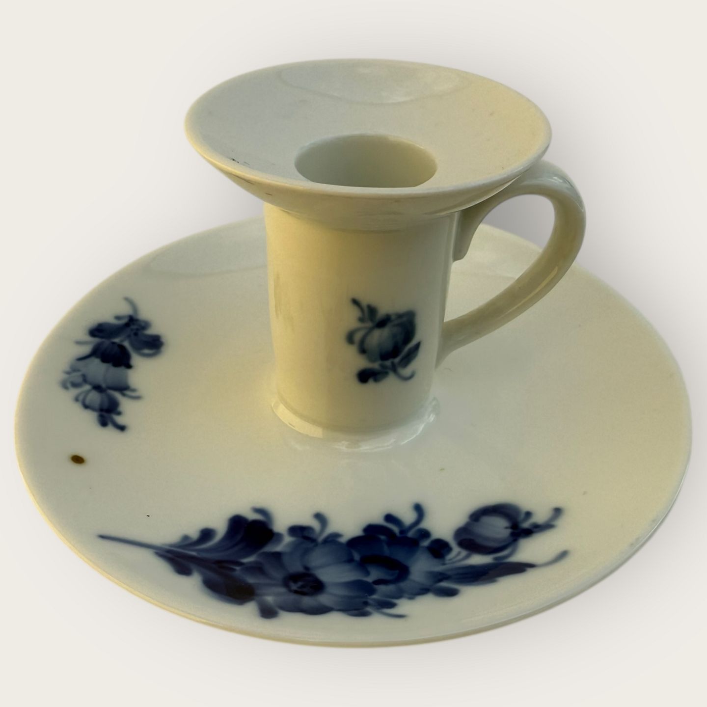 Description: Royal Copenhagen, Blue Flower, Chamber Candlestick, #10/2307, Employee sorting (4th grade), Has a brown sulfur stain otherwise in good condition, diameter 13cm, height 6.5cm