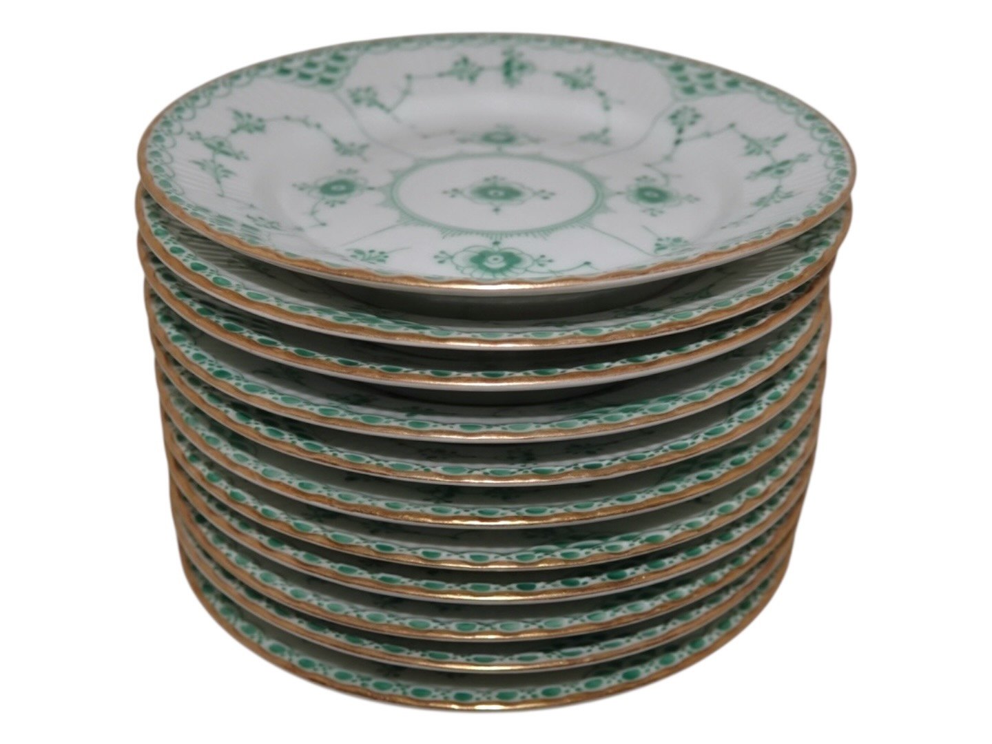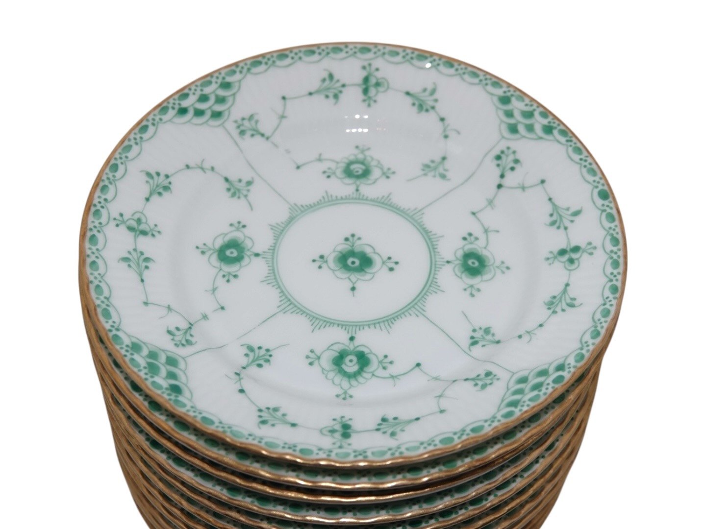 Description: Royal Copenhagen Green Fluted Half Lace with gold trim, side plate.