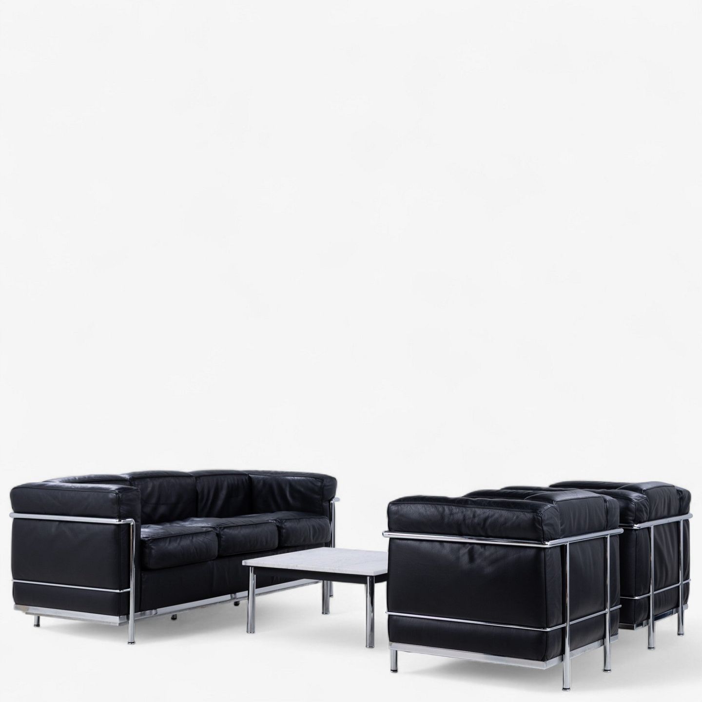 LC 10 - Sofabord med plade i hvid marmor på stel af stål.