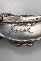 Beskrivelse: Ornamenteret Jacob Hull Broche i Forsølvet metal med sort sten