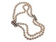Beskrivelse: Dobbeltradet perle armbånd af store rosa-farvet Akoya perler fra Japan. Akoya perler er regnet af nogle af de bedste perler blandt andet på grund af en general højere kvalitet, en rundere form og en flot skinnende overflade.