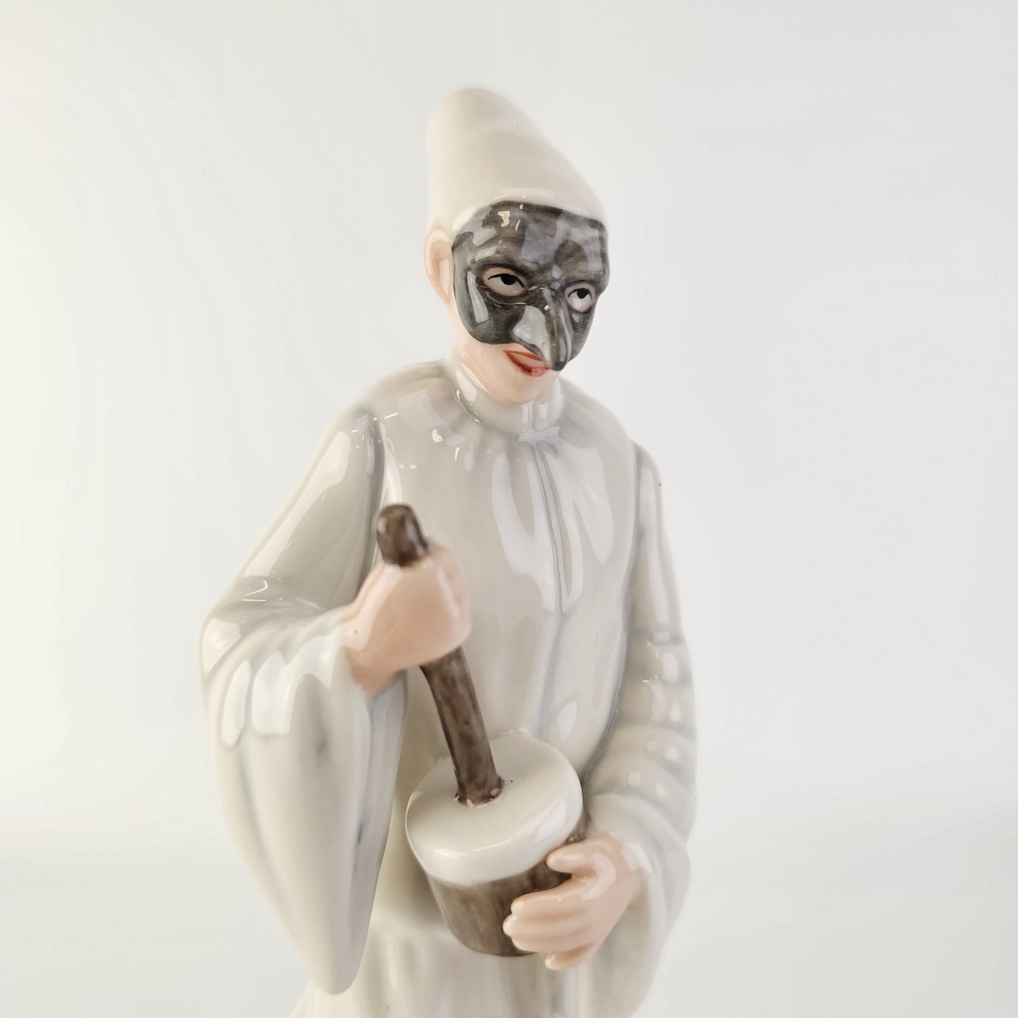 Beskrivelse: Figur i porcelæn med motiv af Pulcinella fra La Commedia dell'Arte Italiana