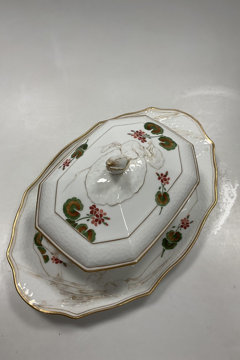 Royal Copenhagen Art Nouveau Pattern No. 225 Geranium Tureen with underplate No. 2038 / 2040