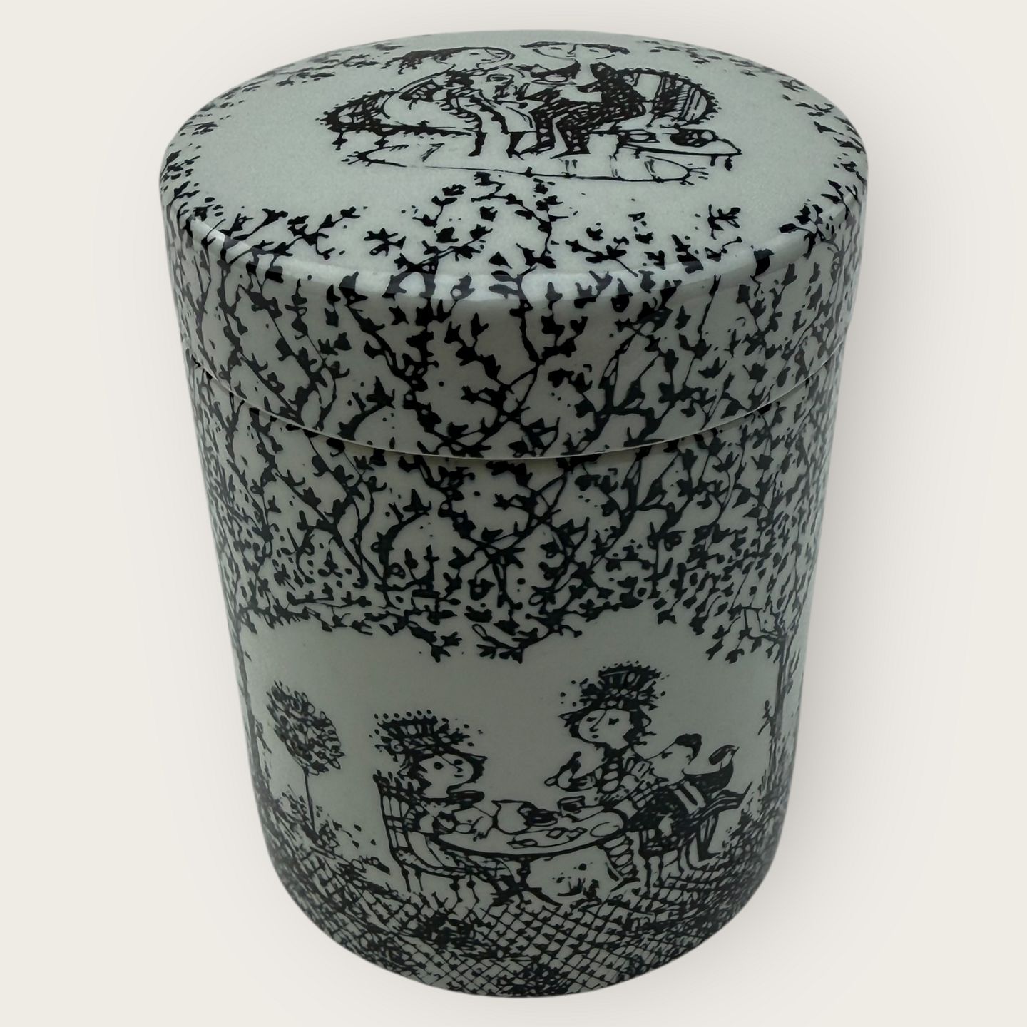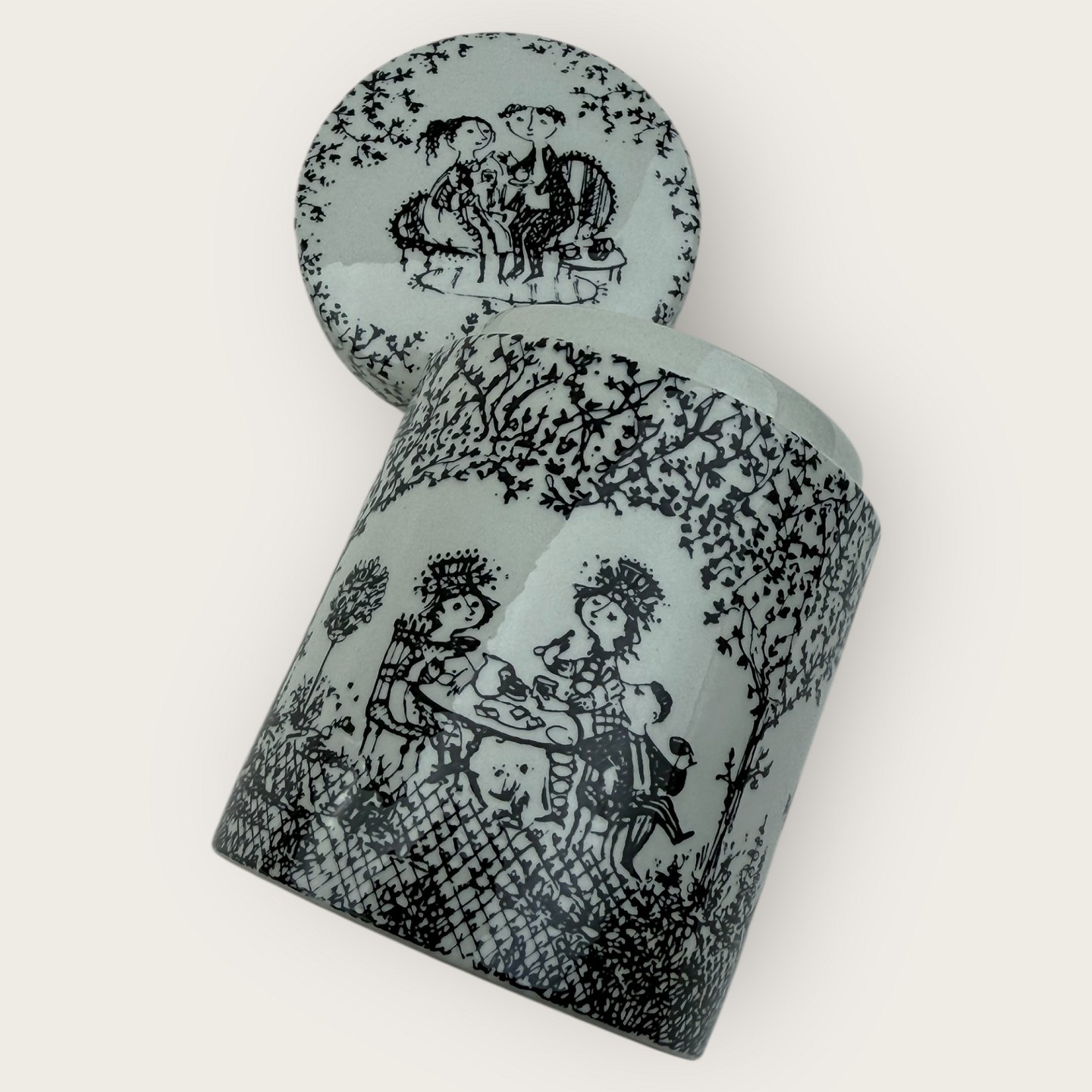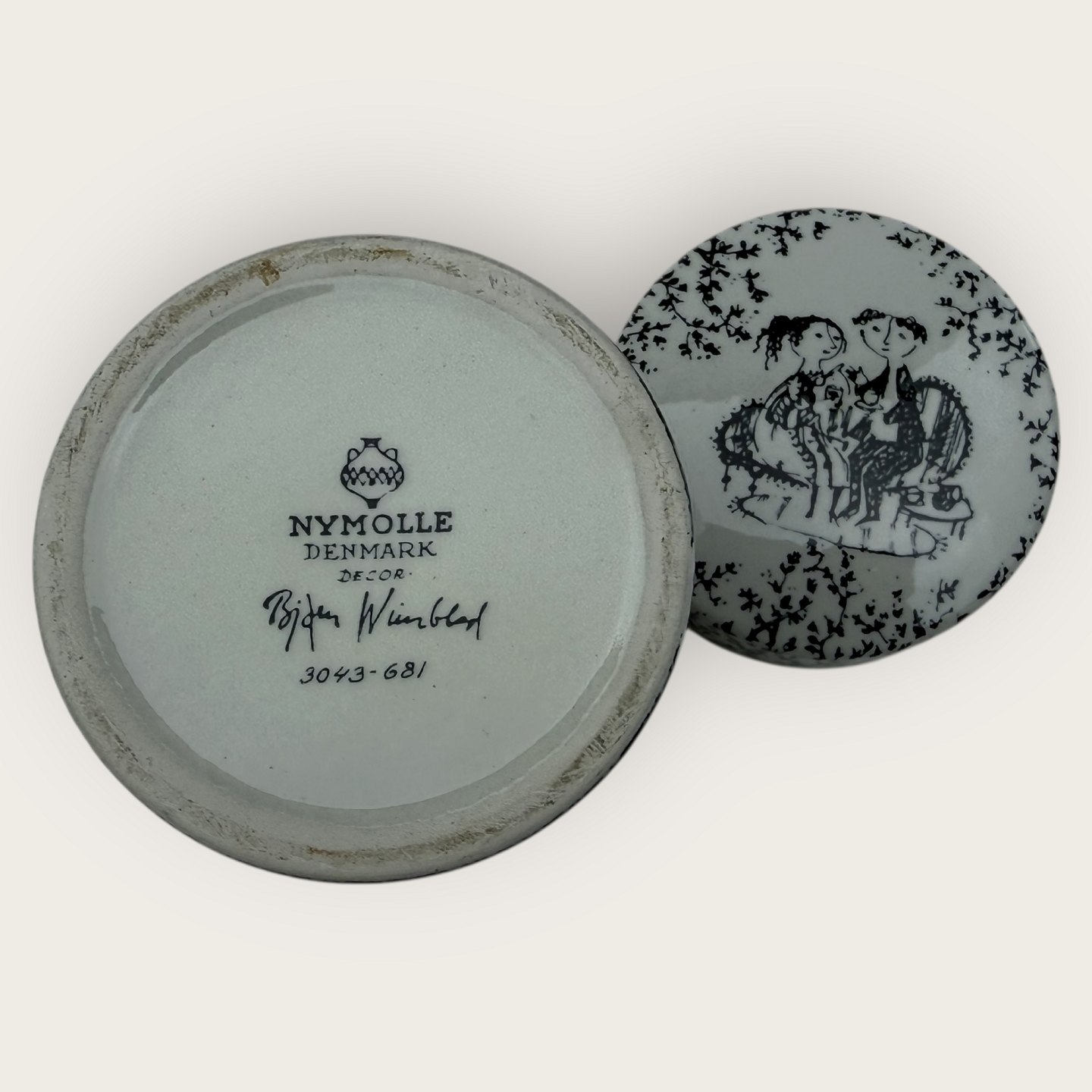 Beskrivelse: Bjørn Wiinblad, Ny mølle keramik, Lille krukke med låg, Nr. 3043 - 681, Højde 10cm, diameter 7,5cm*fin stand*