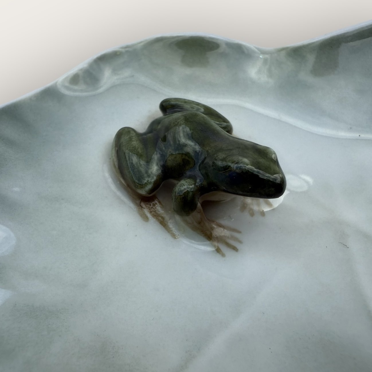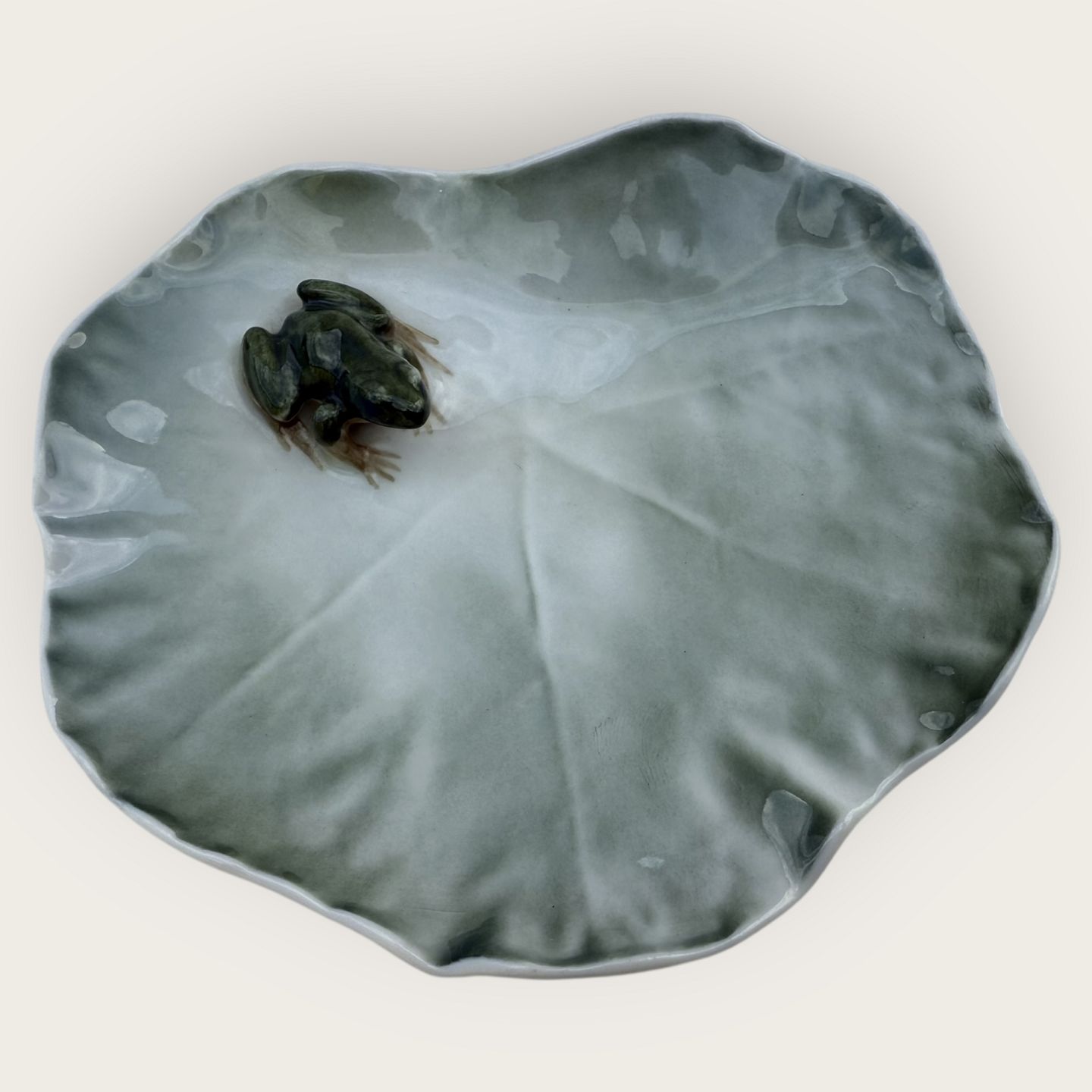Beskrivelse: Royal Copenhagen, Grøn frø på blad, #2477, ca. 10x11cm, 1. sortering *fin stand*
