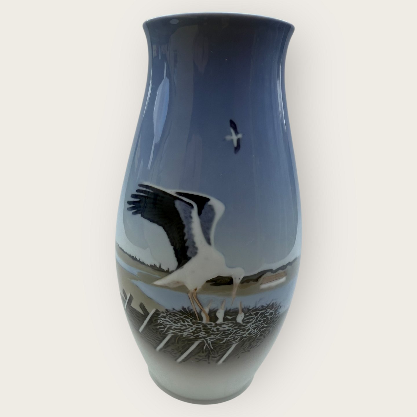 Beskrivelse: Bing & Grøndahl, Vase med Storkerede, # 1302/6250, højde 21cm, 1. sortering, fin stand.