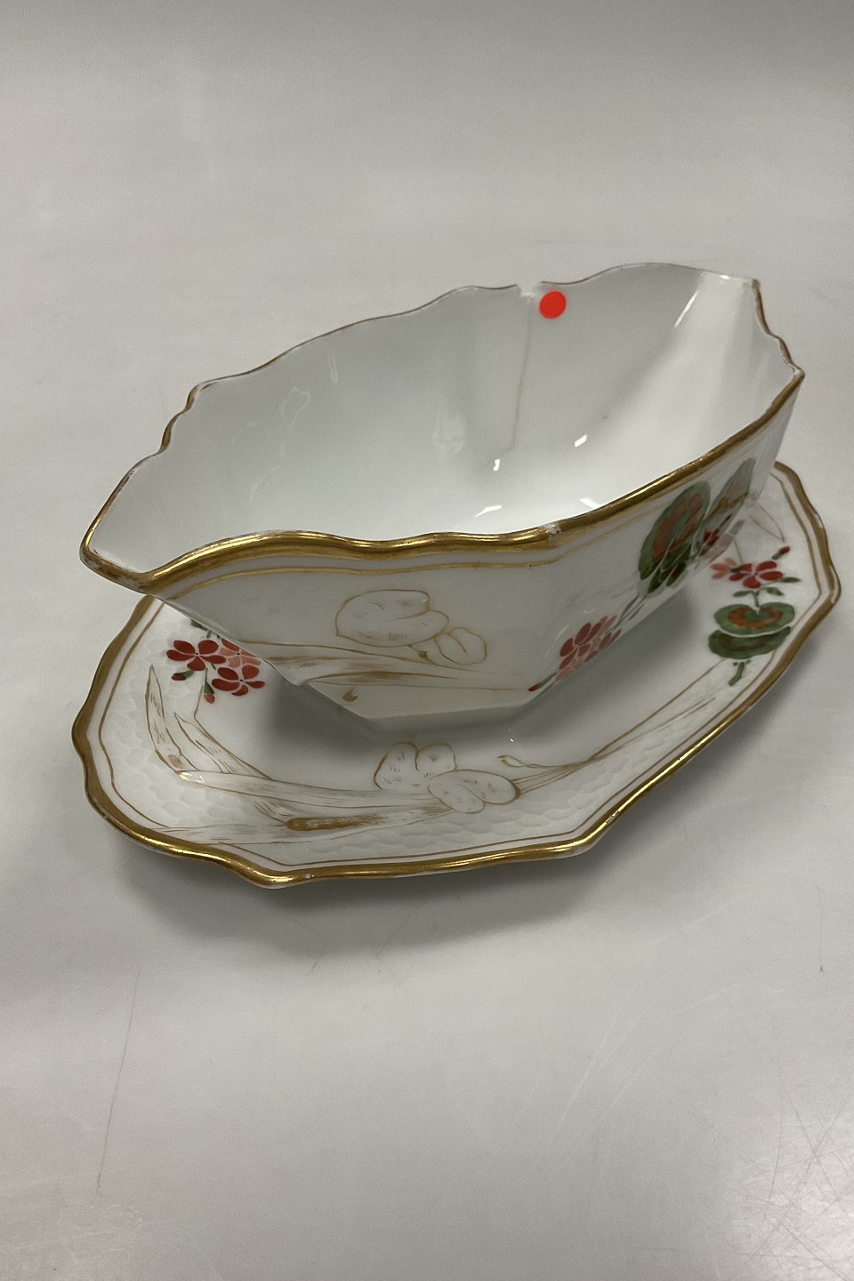 Beskrivelse: Royal Copenhagen Art Nouveau Stel No. 225 Pelargonoe Sovseskål No. 2035
