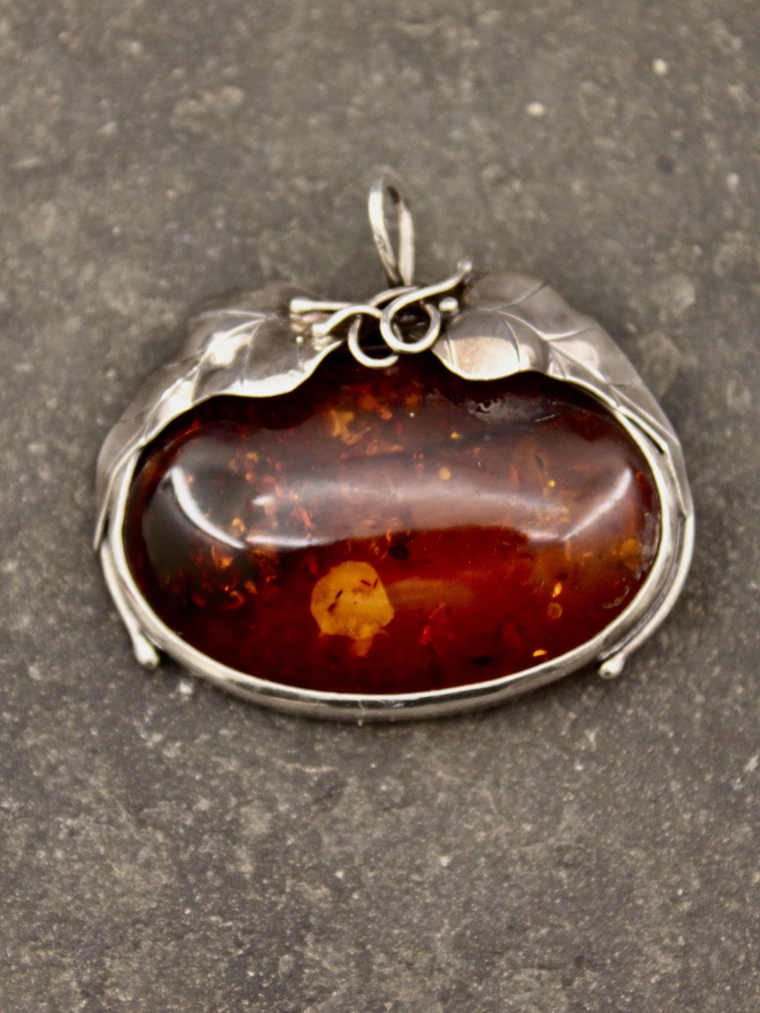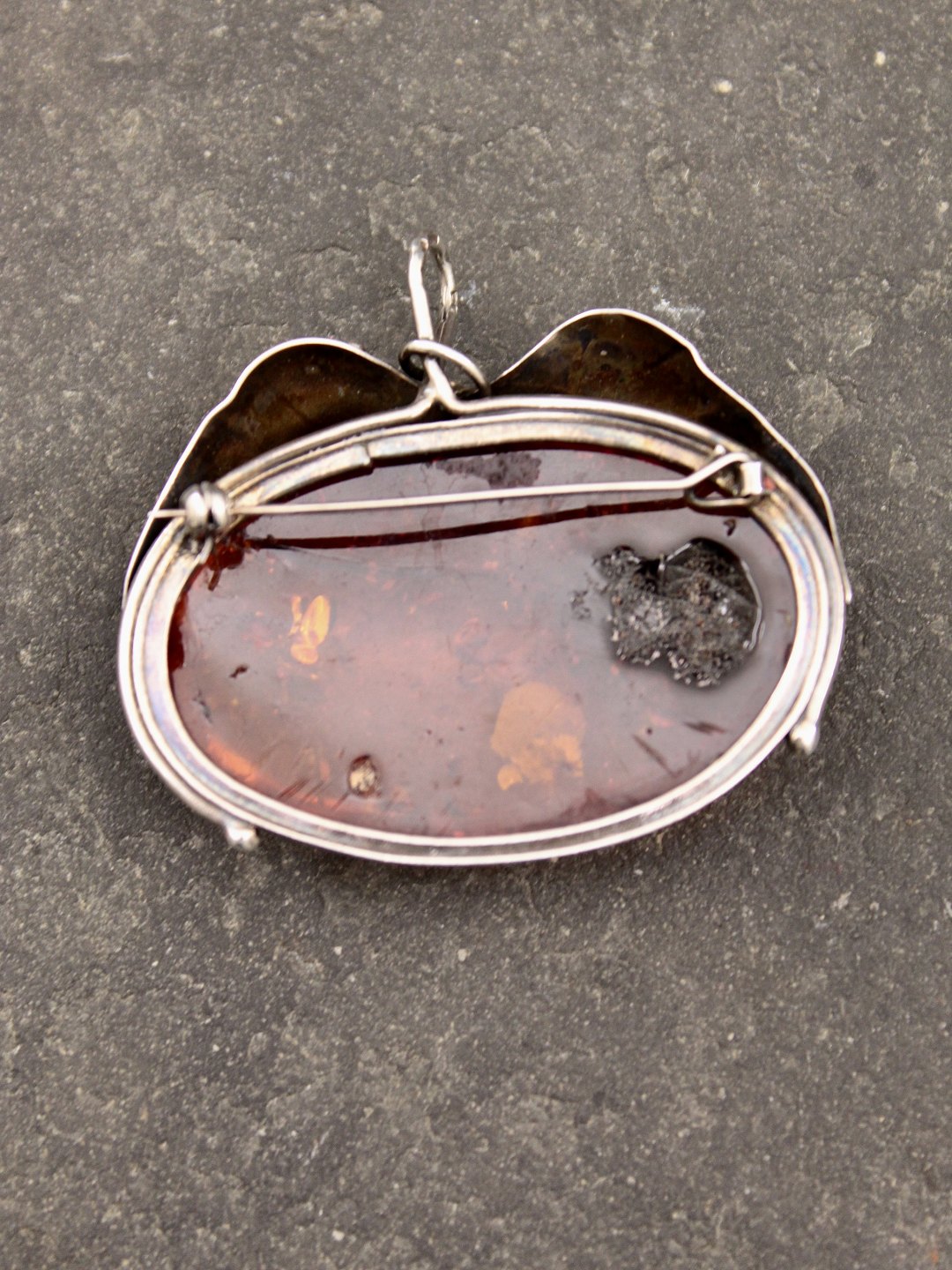 : Rav vedhæng/broche monteret i sterling sølv 5,1 x 3,8 cm. emne nr. 622954