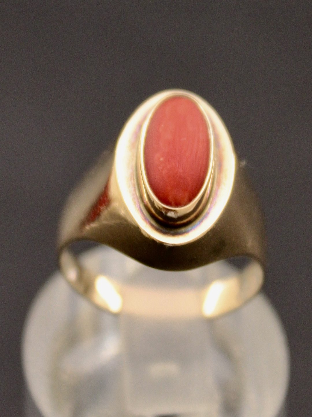 : 8 karat guld ring størrelse 57 med koral fra guldsmed Knud Lind Aarhus emne nr. 622993