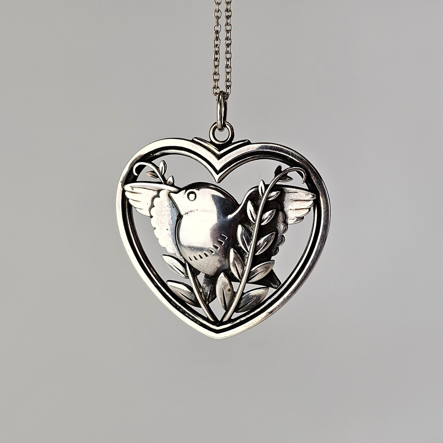 Beskrivelse: Vedhæng i sterling sølv med motiv af en fugl og to kviste