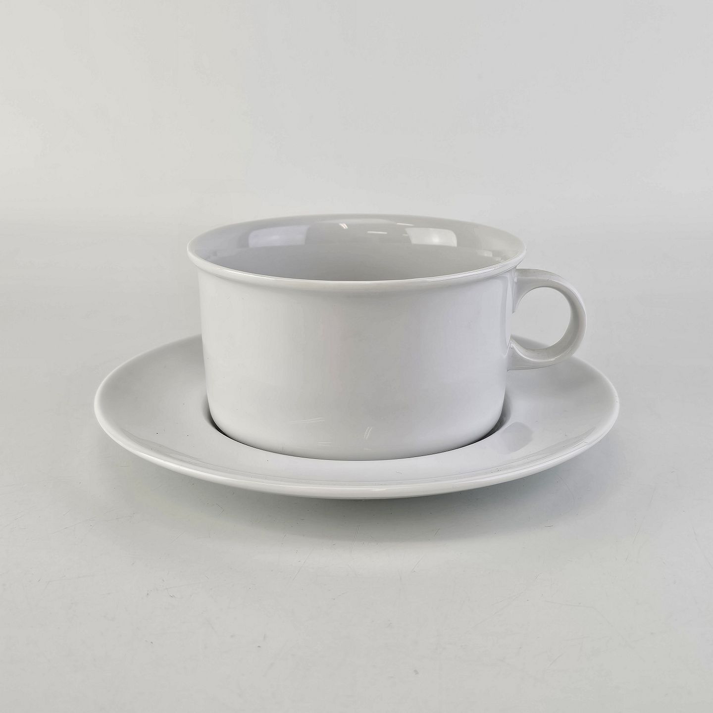 Beskrivelse: Kaffekop med underkop i glat hvidt porcelæn fra stellet Hvid Domino