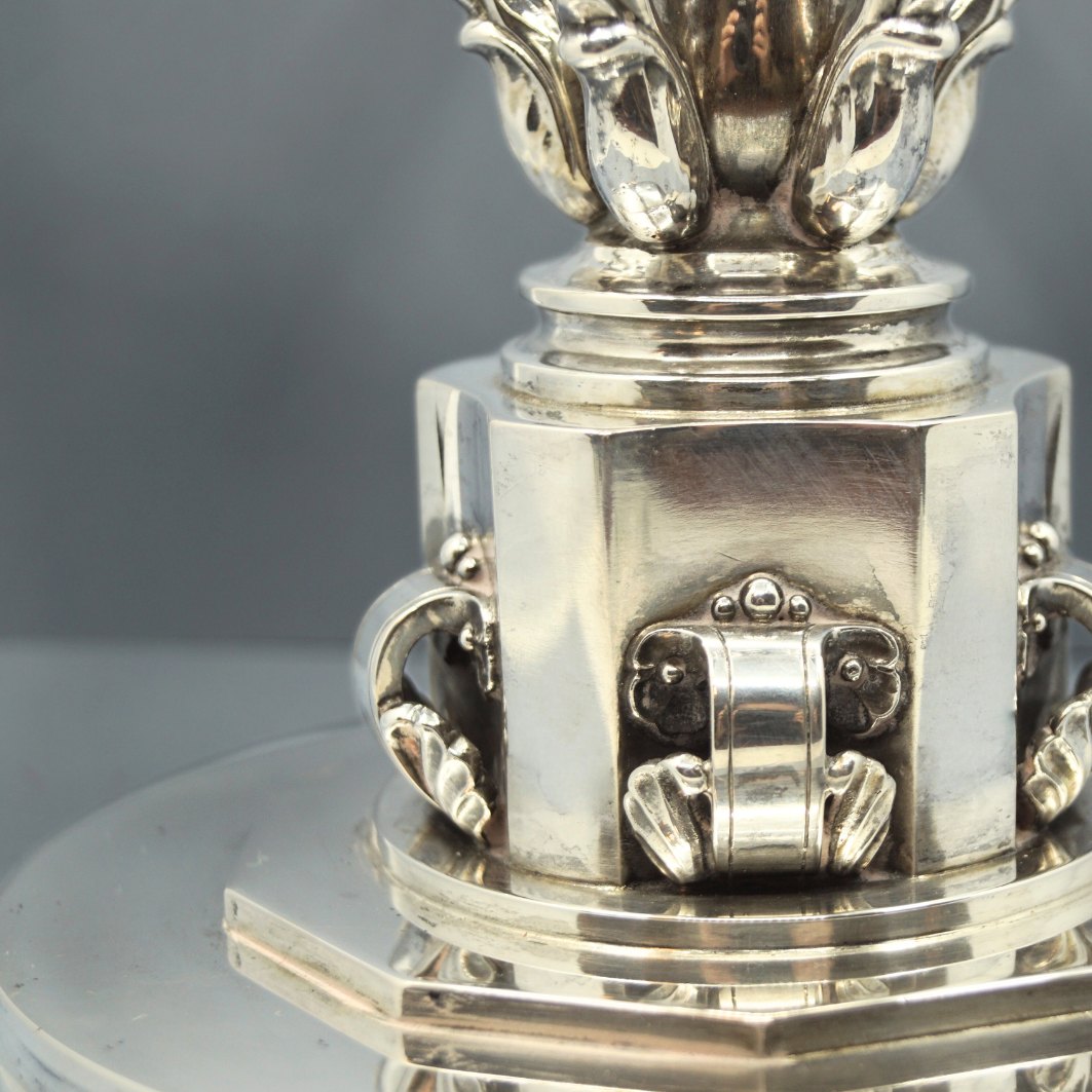 Beskrivelse: Evald Nielsen sølv lysestage.