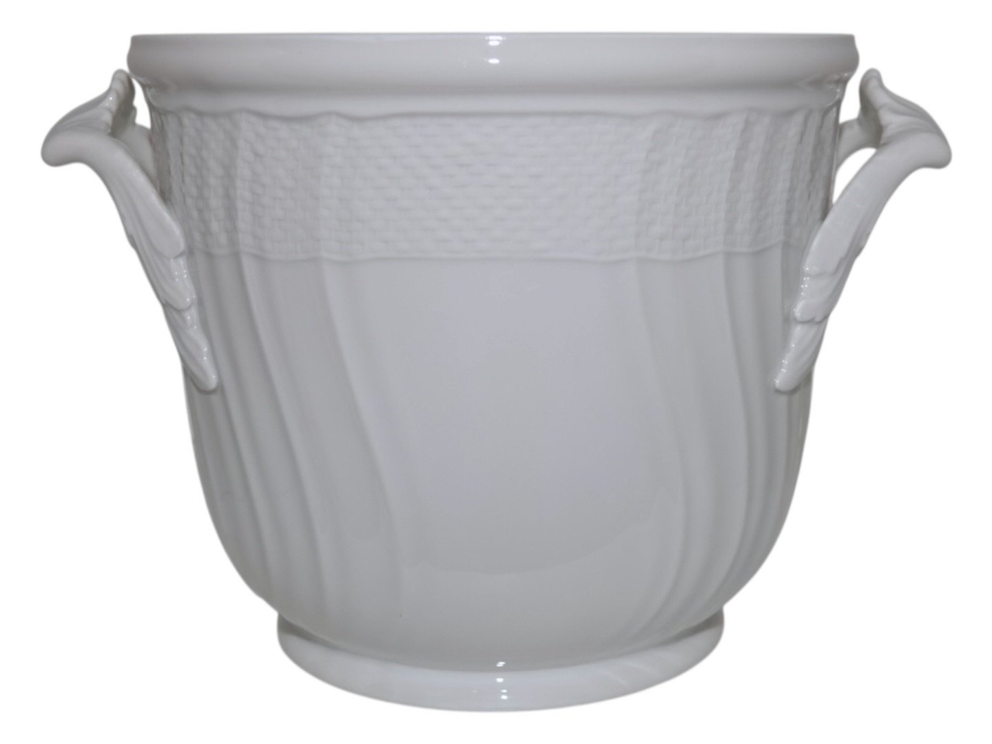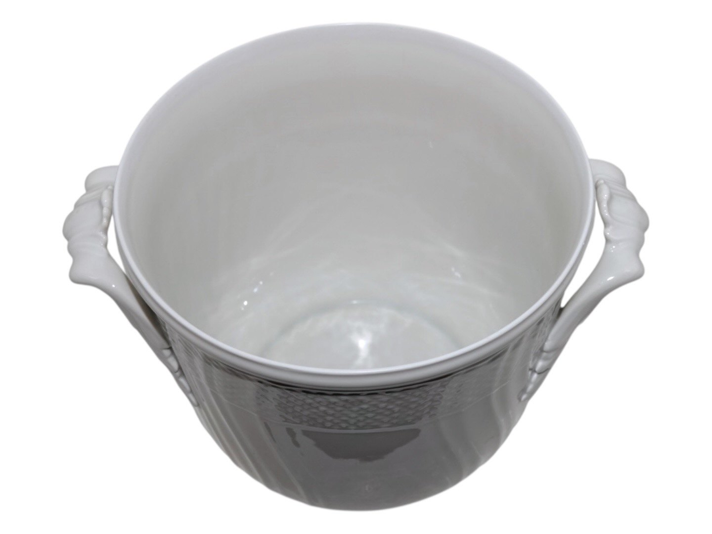 Beskrivelse: Royal Copenhagen Hvid Svejfet vinkøler / urtepotteskjuler.