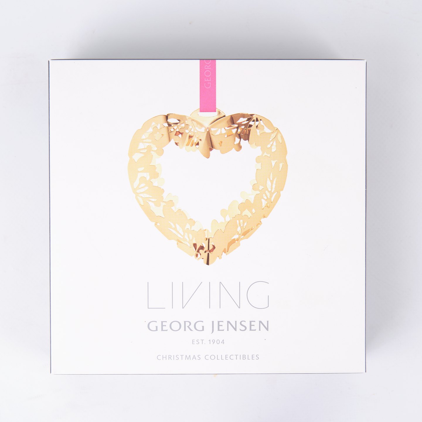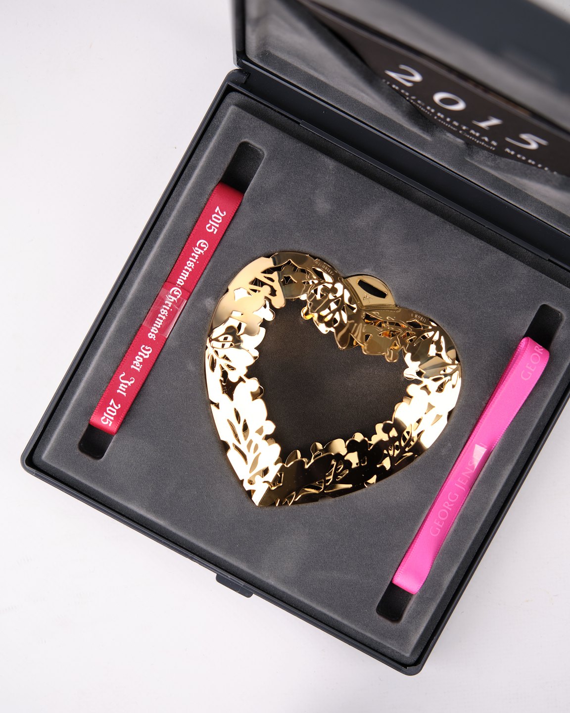 Beskrivelse: Georg Jensen juleuro 2015. Hjerte belagt med 24 kt. guld. H: 9 cm, B: 9 cm. Klassisk dansk julepynt og samlerobjekt.
