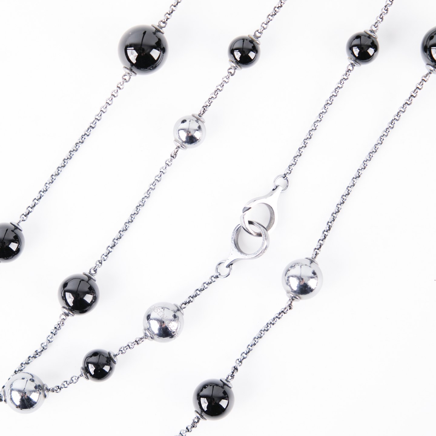 Halskæde – “Sphere Sautoir” – Georg Jensen – 925 sterling – Sort agat – Original æske