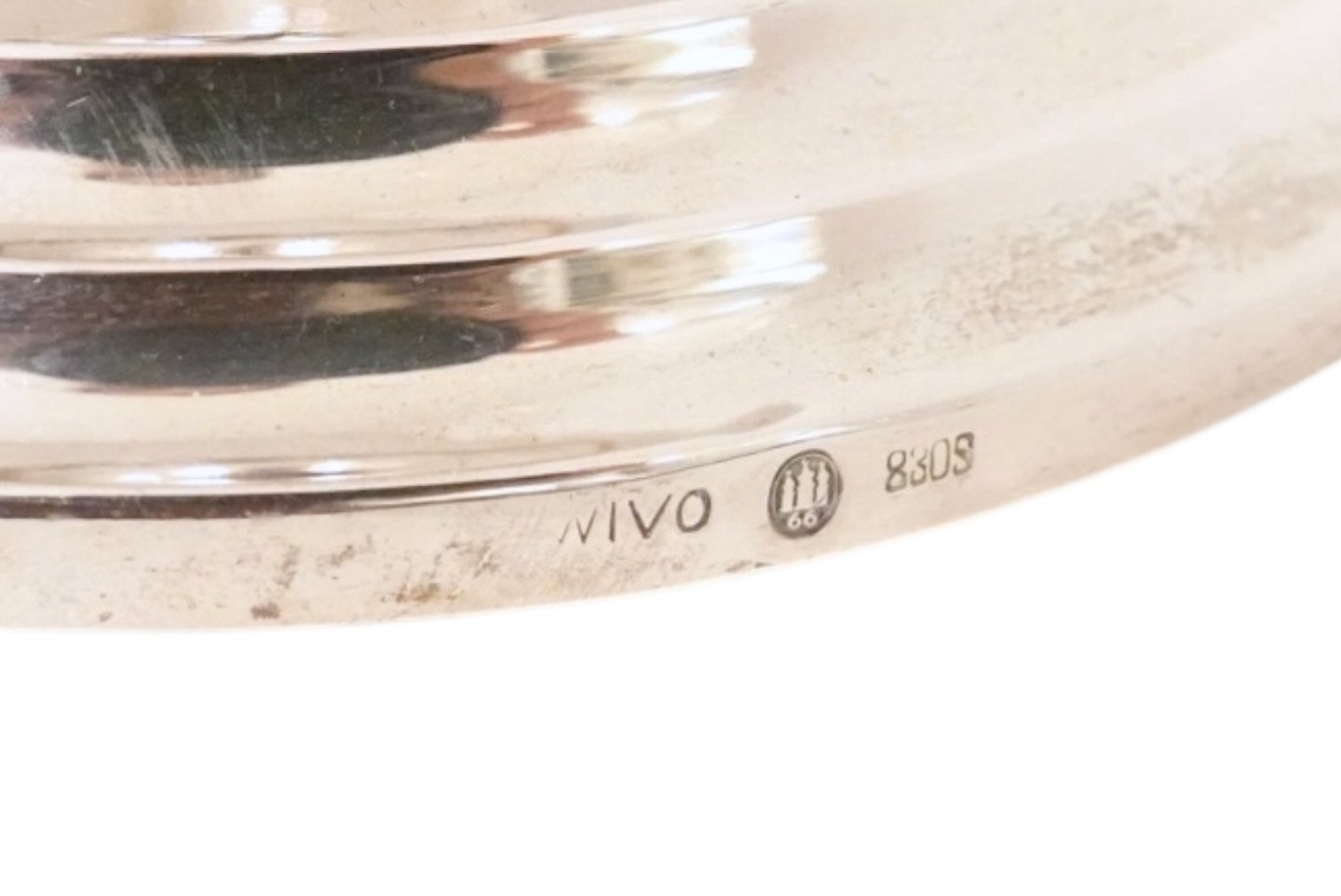 Beskrivelse: Willy Vollmers sølv, par lysetager med aftagelig lysmanchet.