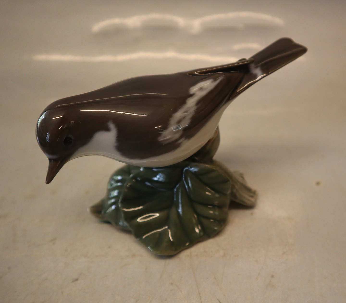 Beskrivelse: 2144 Kgl. Fluesnapper 8 x 13 cm Platten Hallermundt 1920   Fuglefigur i  Porcelæn fra Royal Copenhagen I hel og fin stand