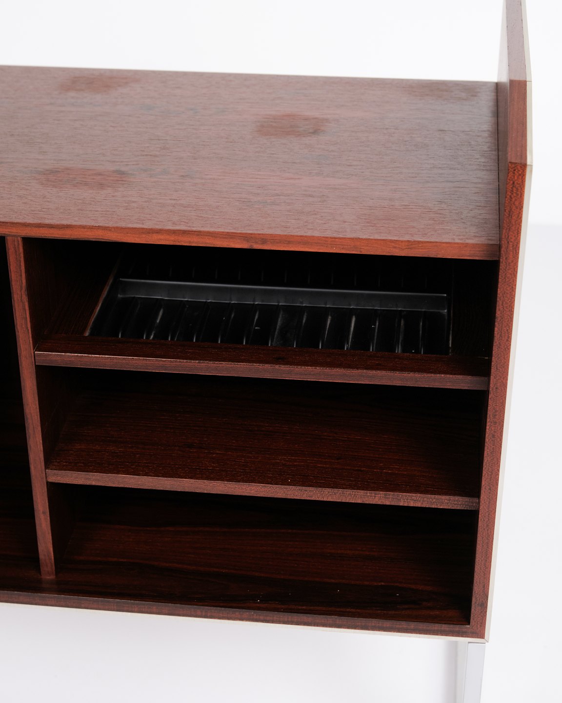 Beskrivelse: Jacob Jensen lav stereoskænk for Bang & Olufsen. Palisander, 1970’erne.