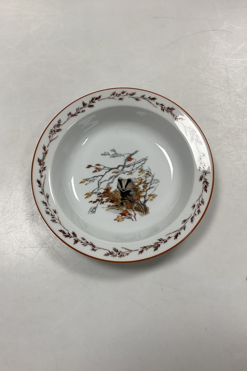 Description: Mads Stage Hunting Dinnerware Deep Plate. Manufacturer: Seltmann Weiden. Motif: Badger.