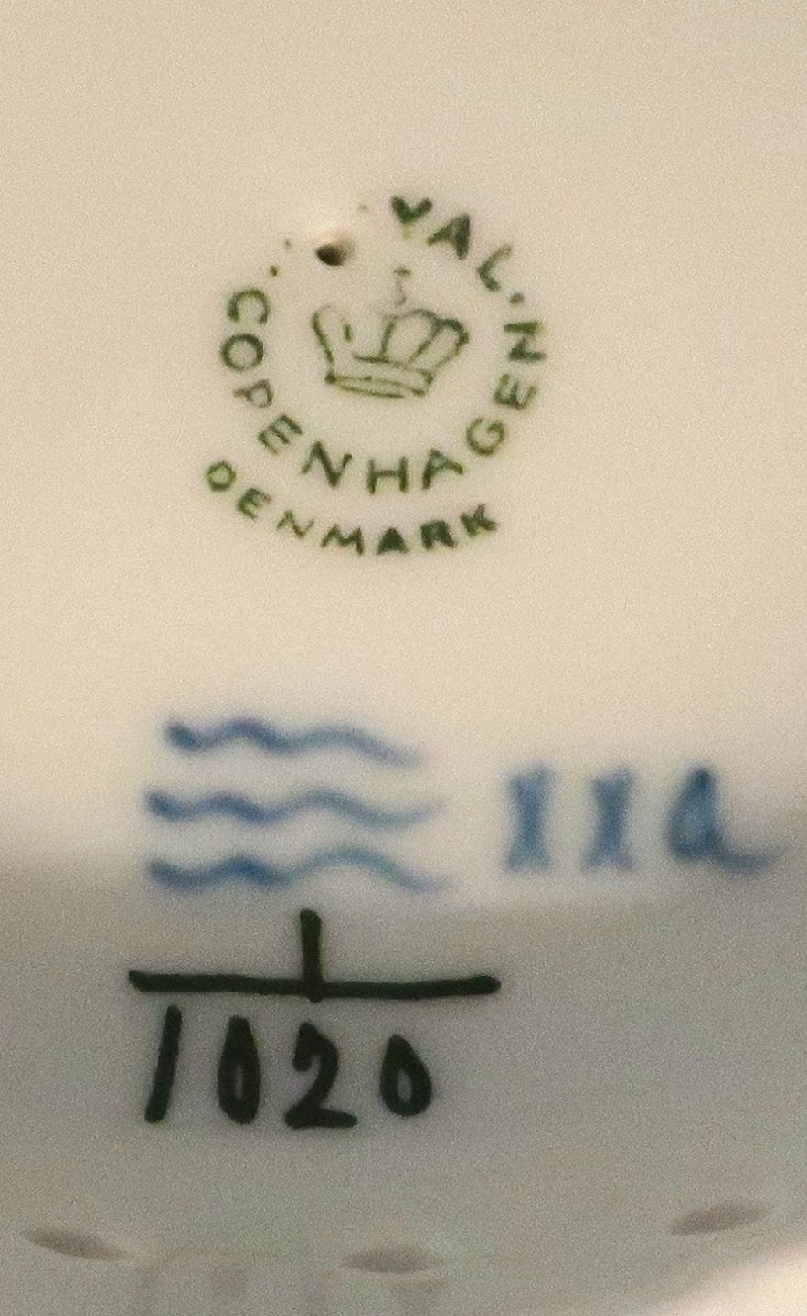 Description: Royal Copenhagen. Blue fluted, full lace. Cake bowl on foot. Model 1020. Height 14.5 cm. Diameter 20.5 cm. (1 quality)