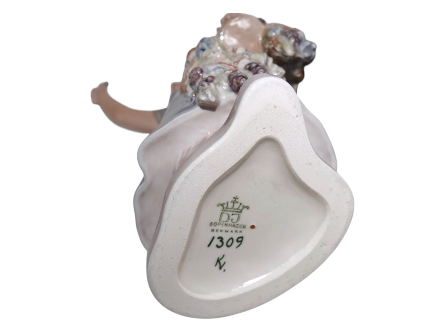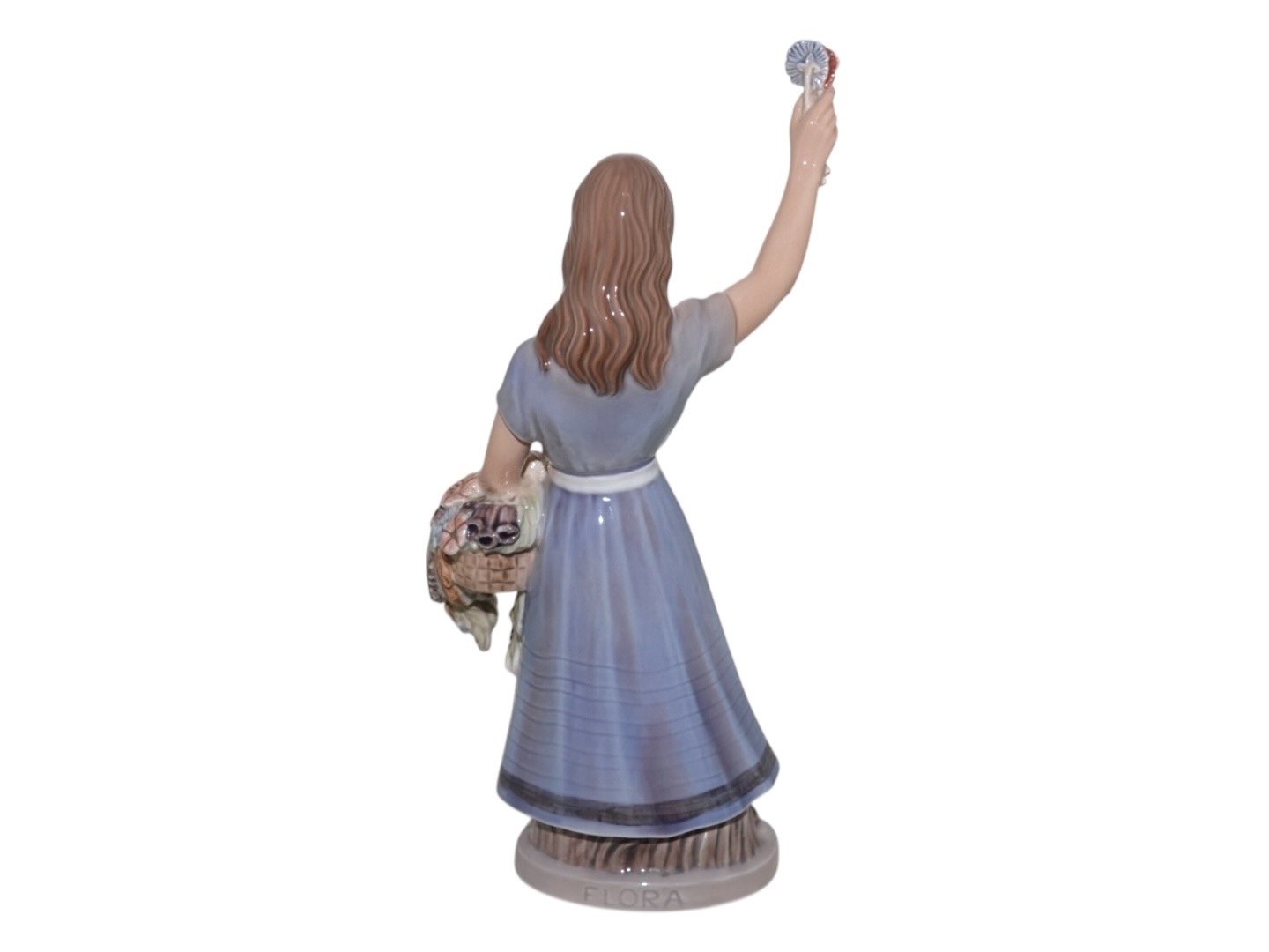 Beskrivelse: Sjælden Dahl Jensen figur, ung dame med blomster med titlen "Flora".