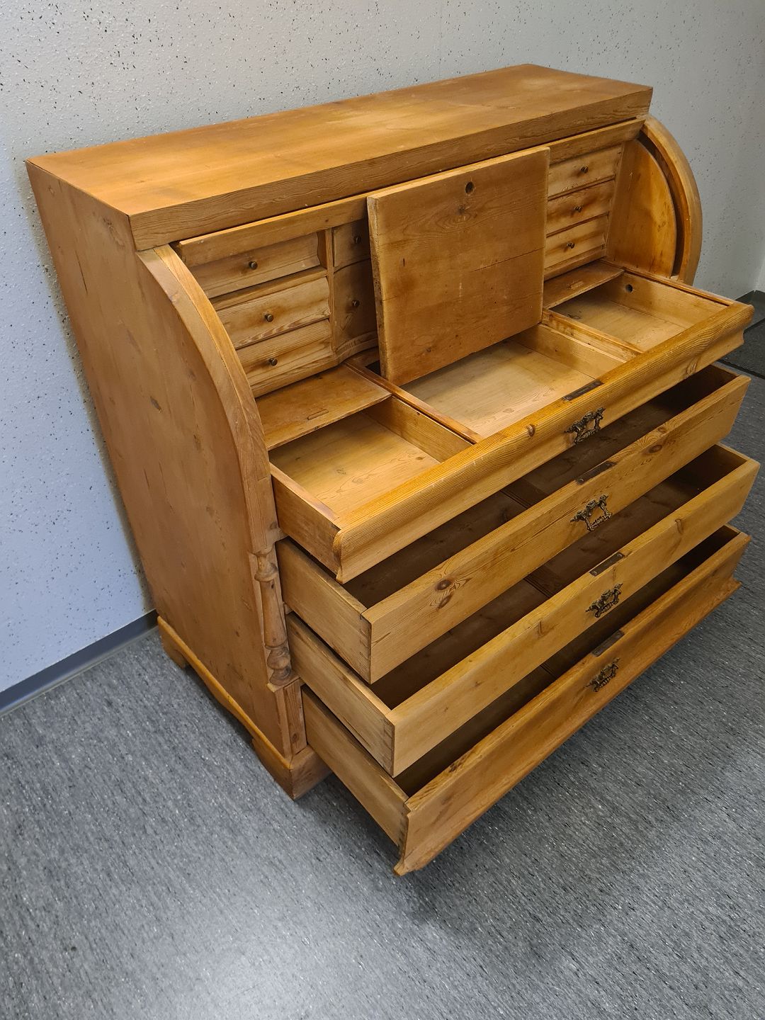 Beskrivelse: Chatol fra 1930'erne i massiv fyrretræ. Fremstår pænt, ok velholdt og udmærket funktionsdygtigt uden de store brugsspor. Dog umiddelbart uden nøgle.