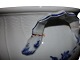 Et håndtag er limet på og låget har en "kryds" hårrevne på midten, se nærfotos.
