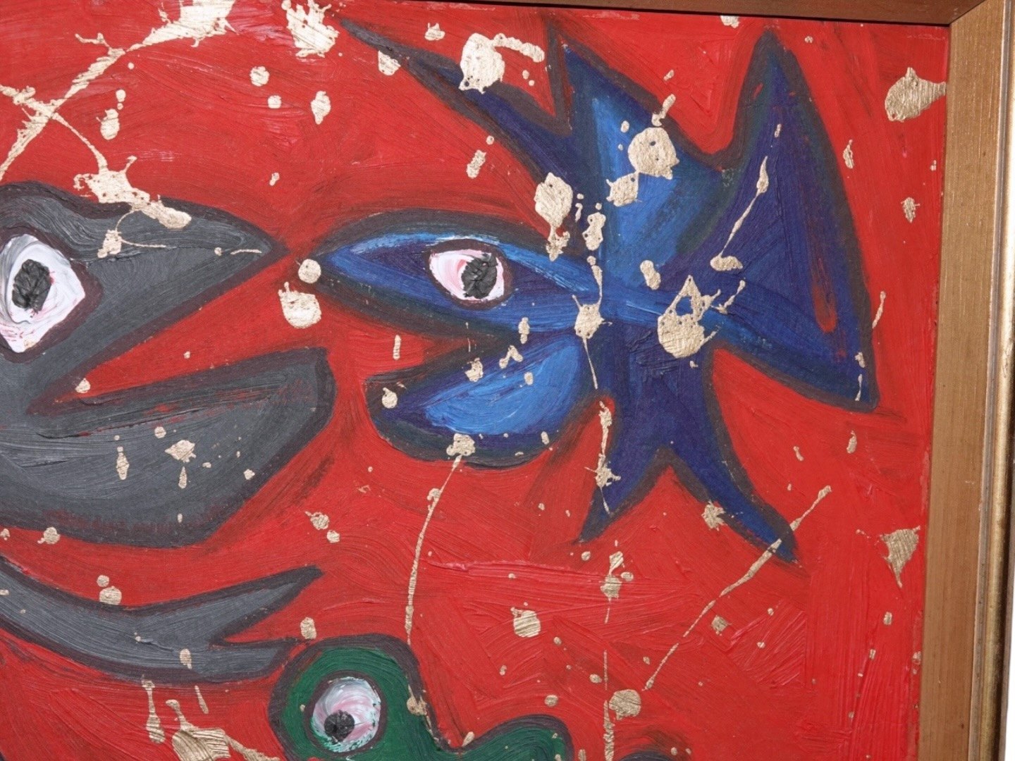 Moderne rødt oliemaleri med fisk