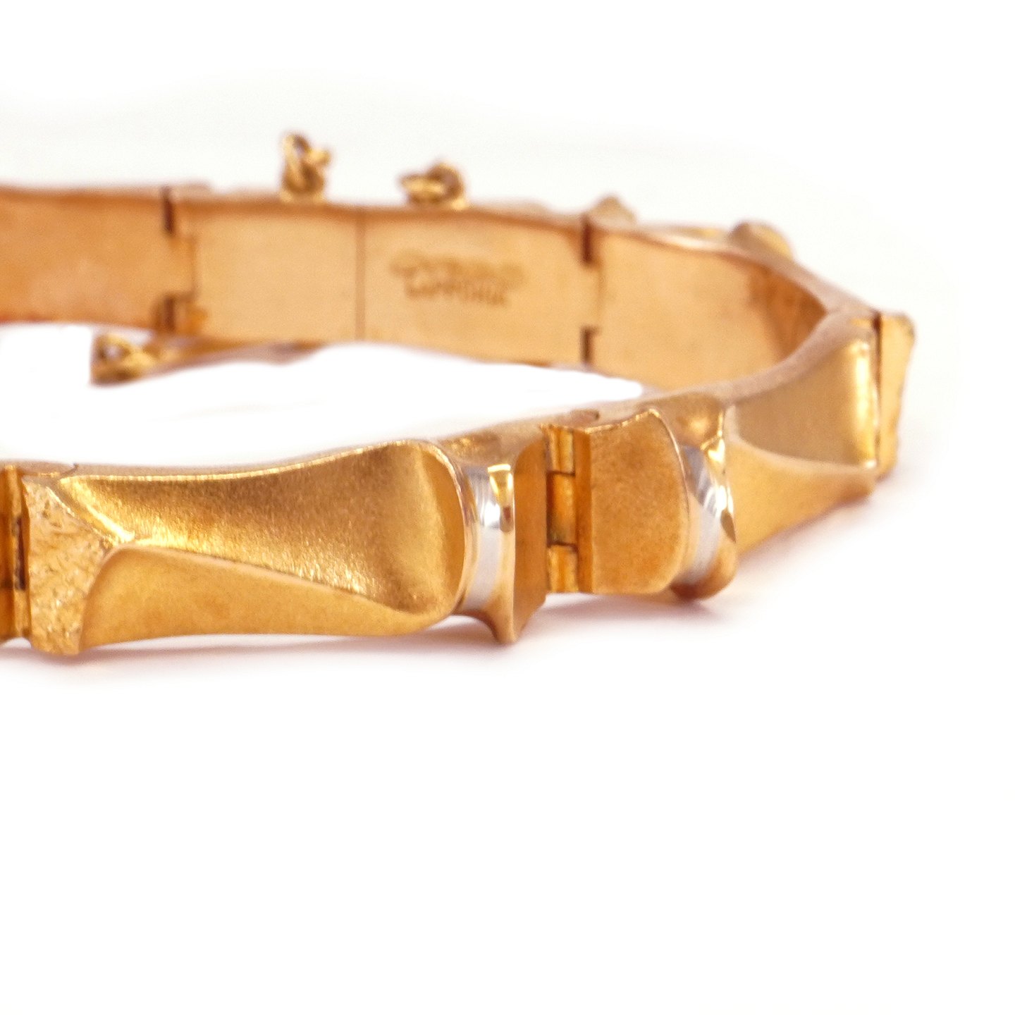Beskrivelse: Lapponia 18kt guld leddelt armlænke med kasse- og sikkerhedslås og -kæde år 1980