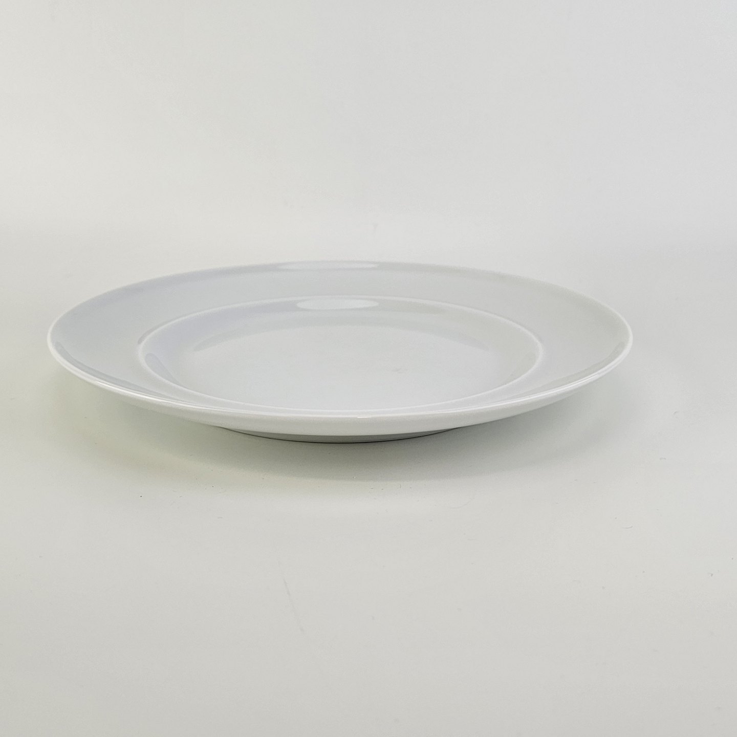 Beskrivelse: Flad frokosttallerken i porcelæn fra stellet Hvid Koppel