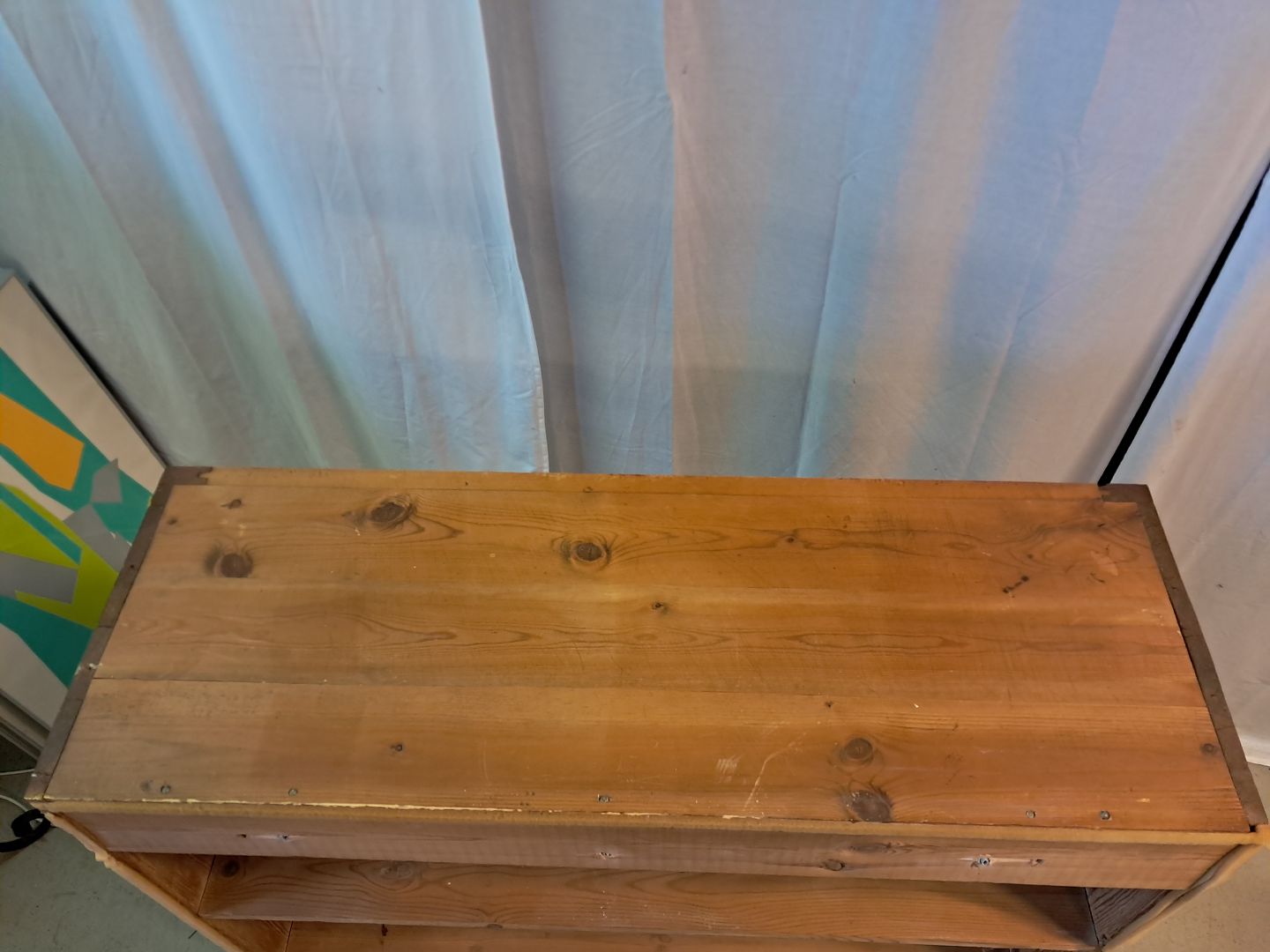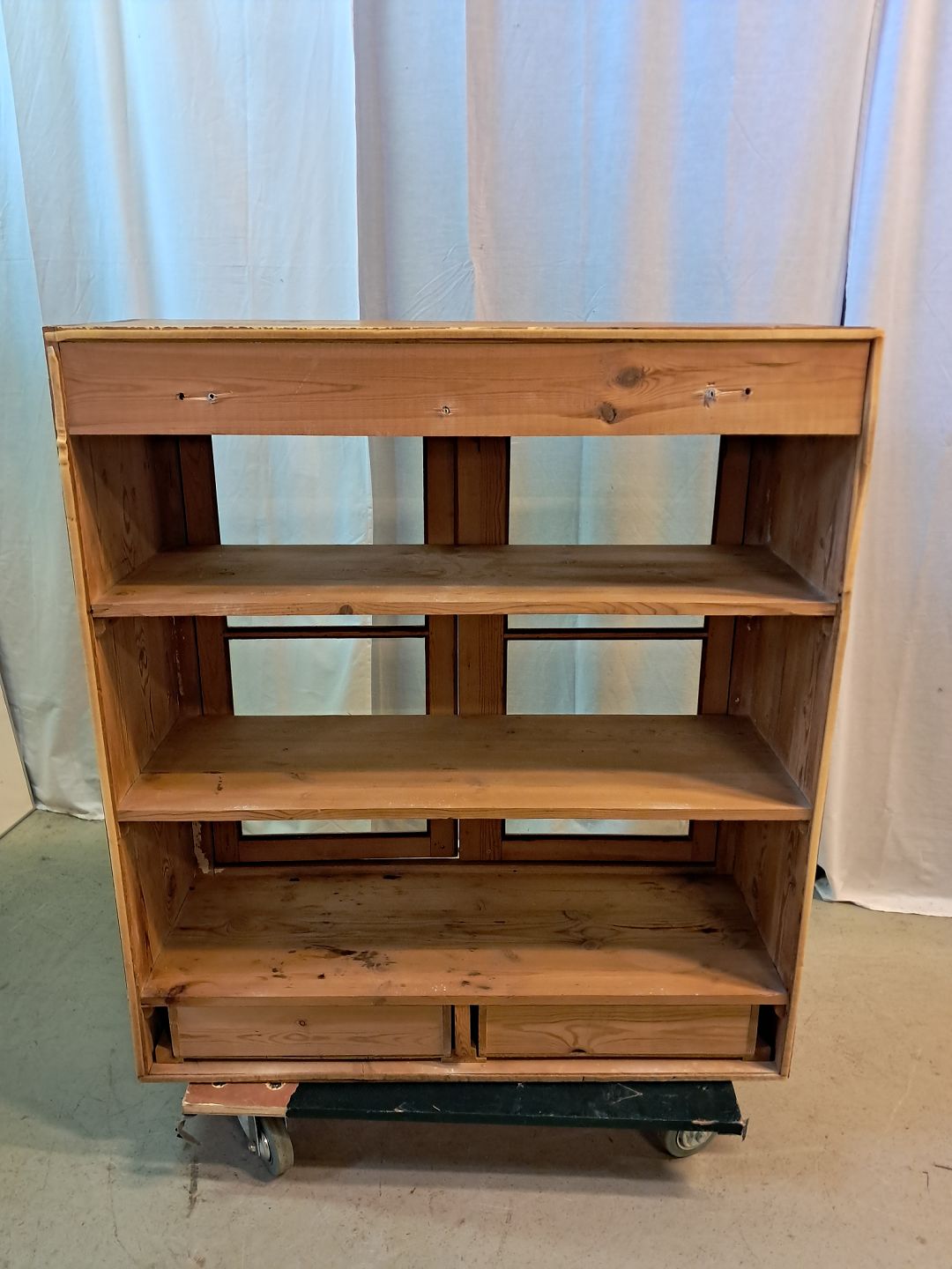 Beskrivelse: Gammelt køkkenskab i massivt fyrretræ, fra 1920erne.