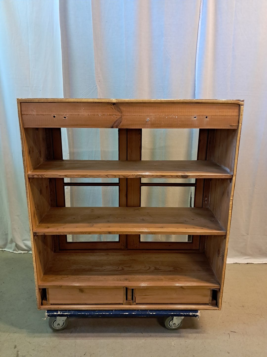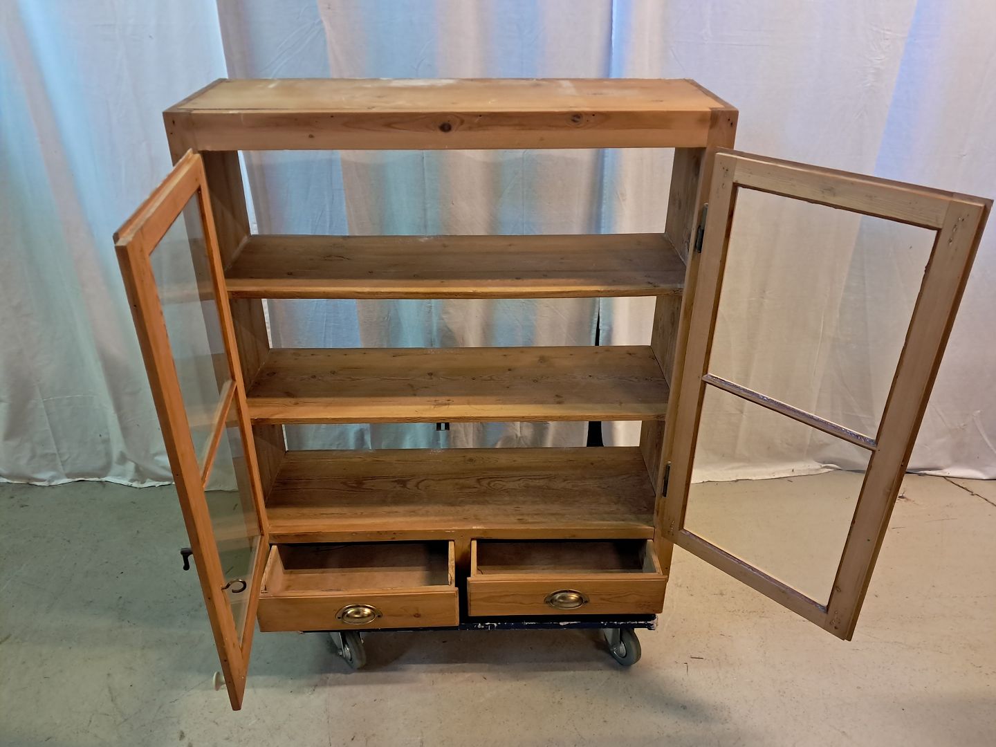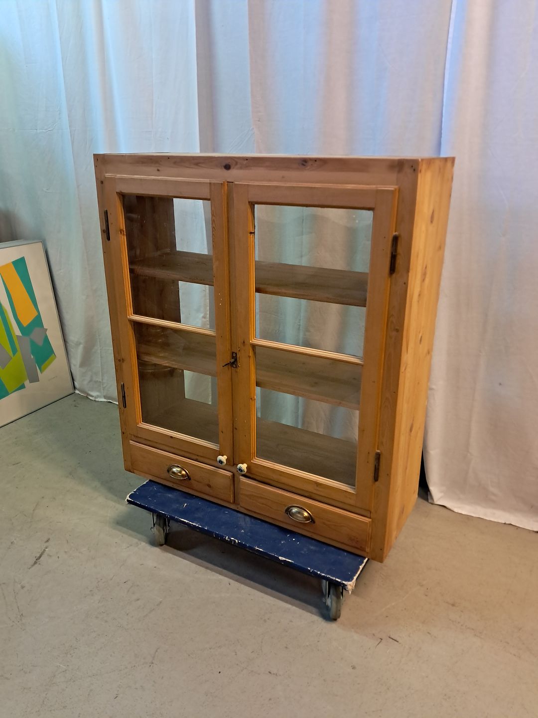 Beskrivelse: Gammelt køkkenskab i massivt fyrretræ, fra 1920erne.