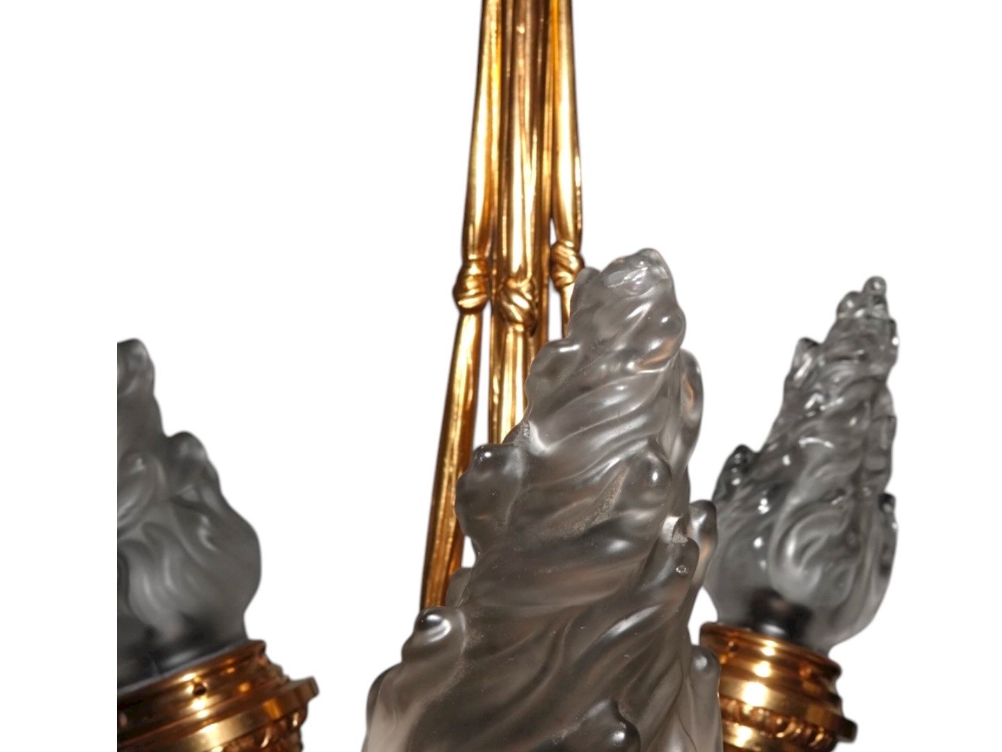 Smal Empire Lysekrone i massiv forgyldt bronze med tre fakler