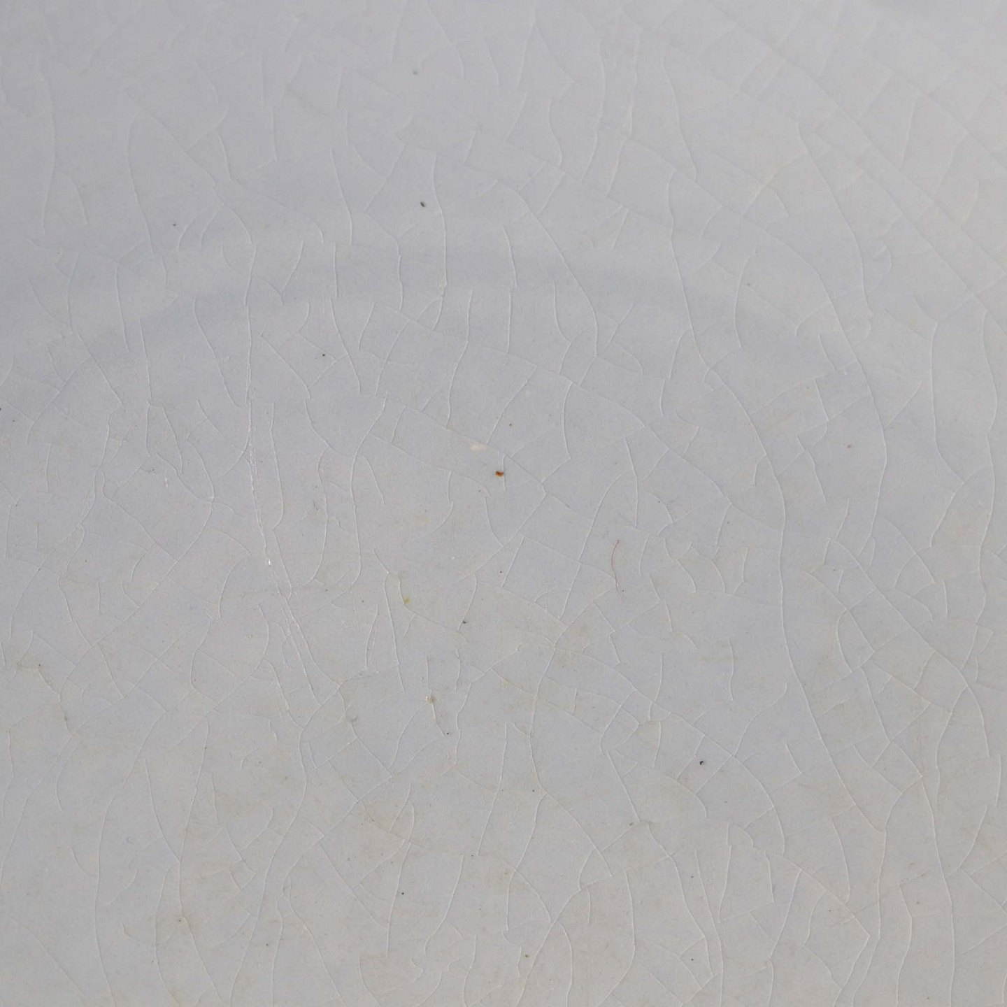 Fremstår med krakkeleringer i glasuren samt en enkel ujævnhed på bagsiden.