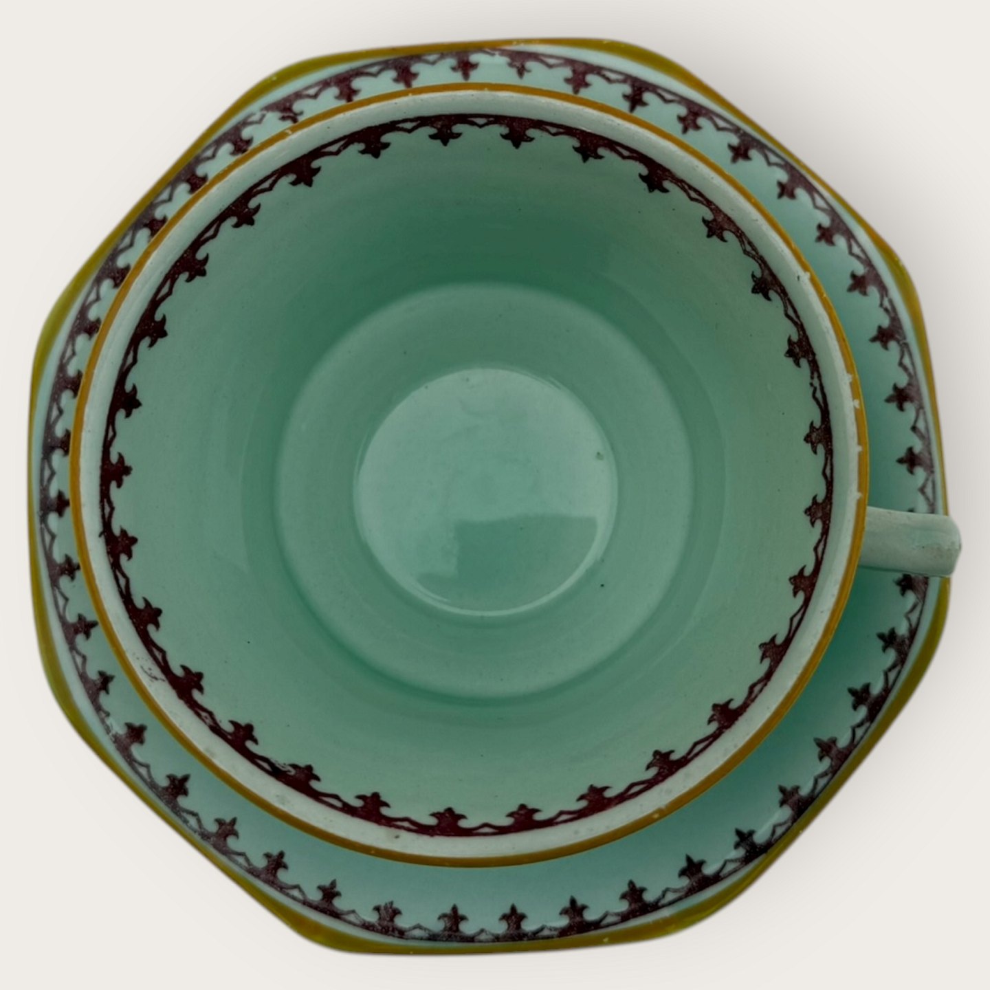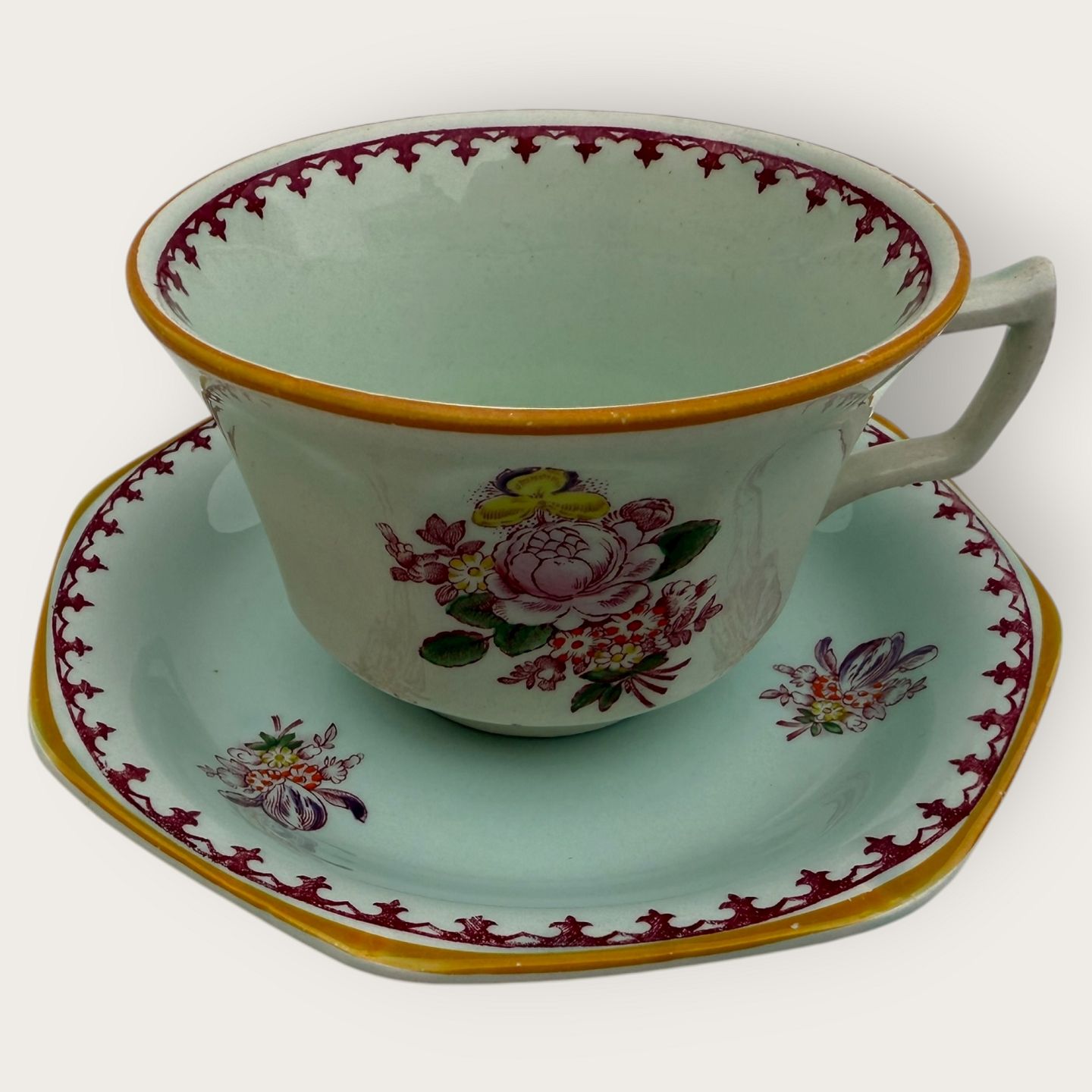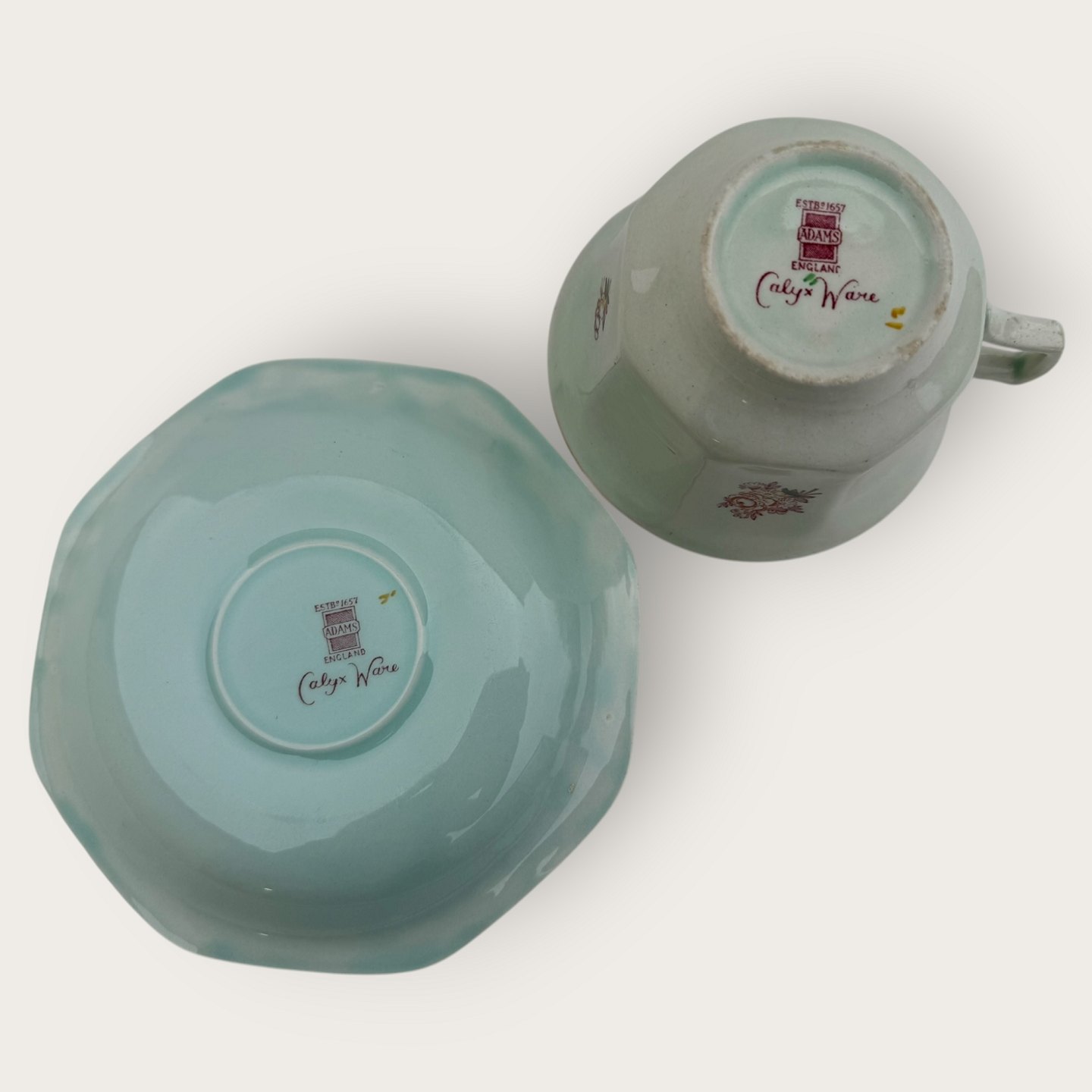 Description: Adams Calyx Ware, Chelsea Sprays red, Teacup, 10.5cm in diameter, height 7cm, *Nice patinated condition*