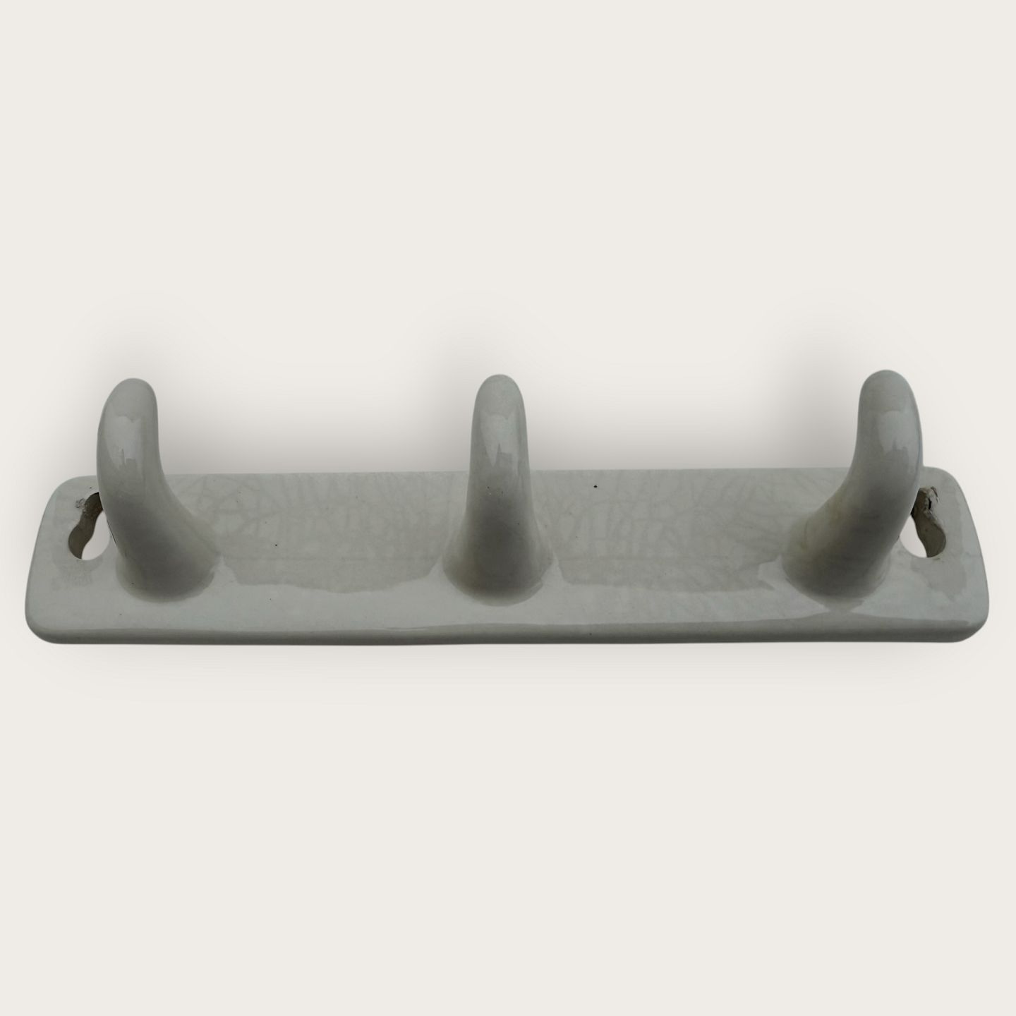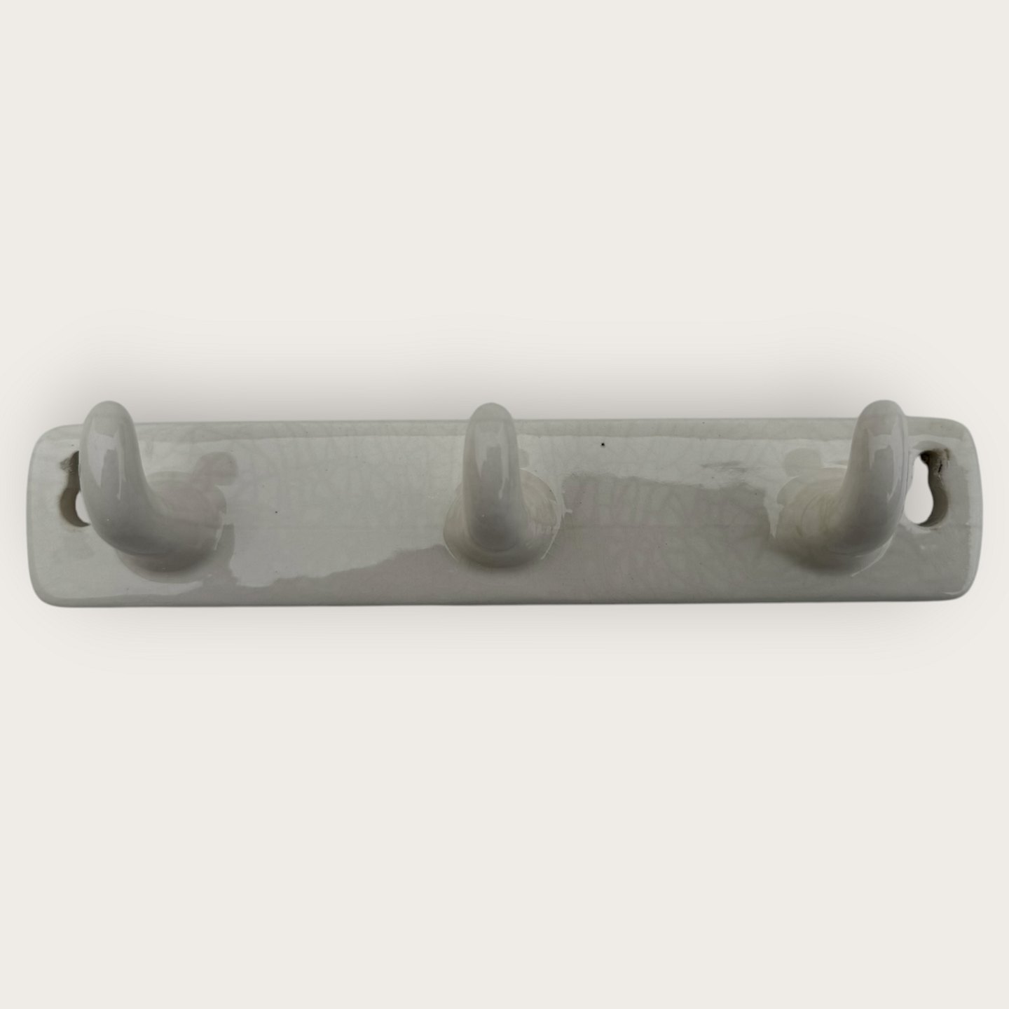 Description: Aluminia, coat rack, 18x16cm, 3 hooks * With some patina at screw holes and small cracks under the glaze (see photo)