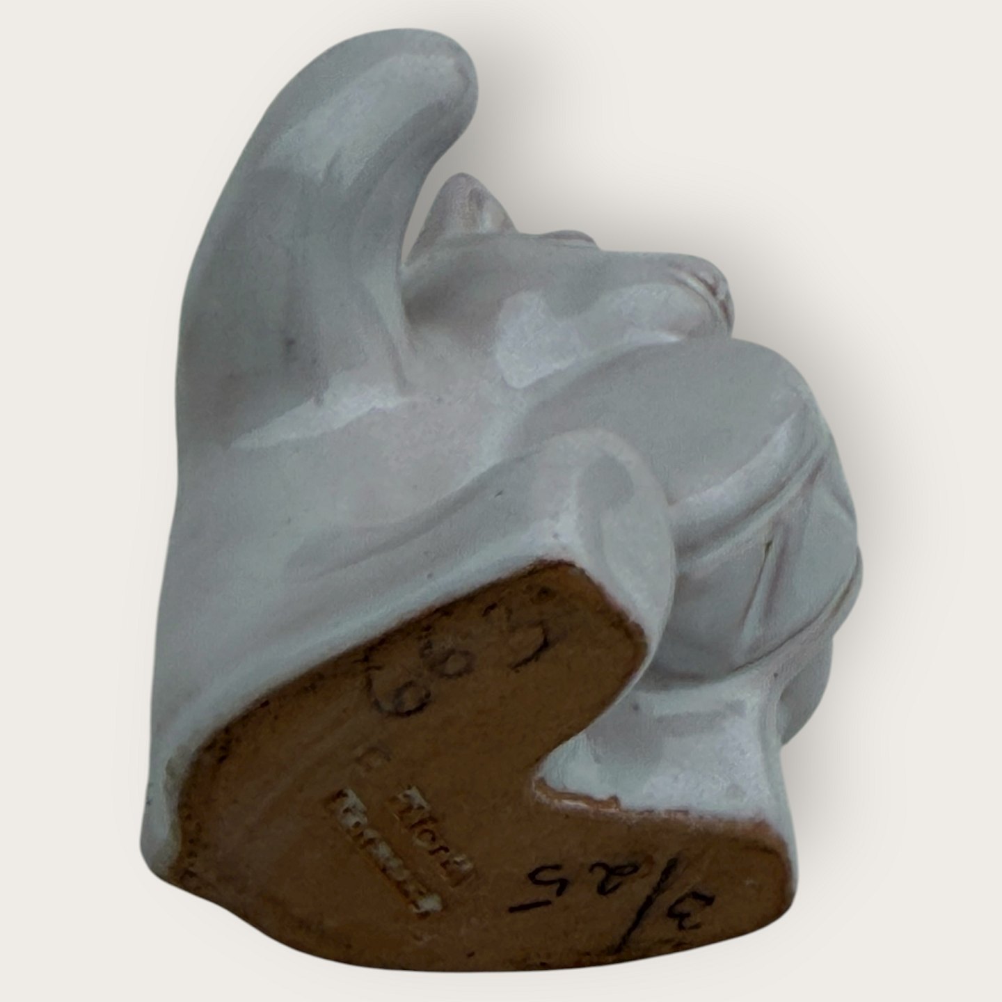 Description: Bornholm pottery, Hjorth, Bear orchestra, Drum, bear with white glaze, approx. 6.5x5.5cm *Good condition*