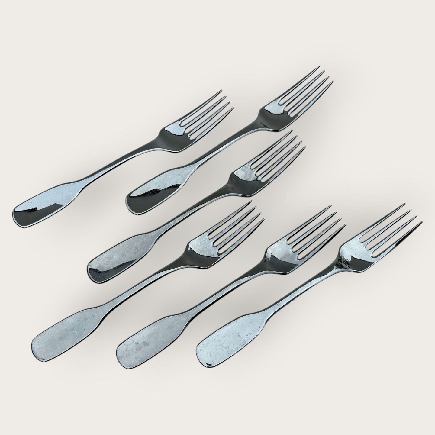 Description: Hans Hansen silversmith, 6 stainless steel forks, 18cm long *nice used condition*