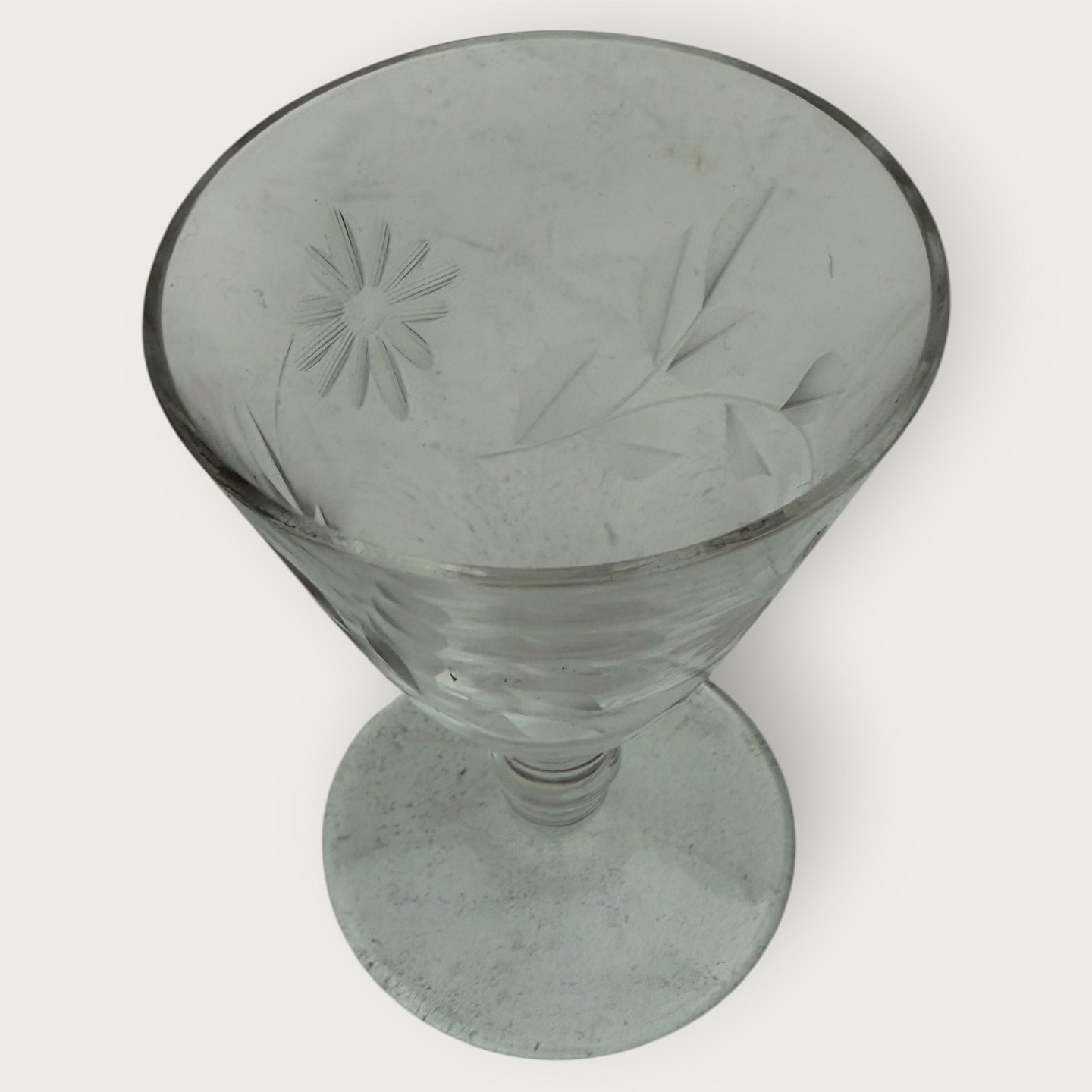 : Portvinsglas med blomsterslibninger, 8cm højt, 6cm i diameter *pæn stand*