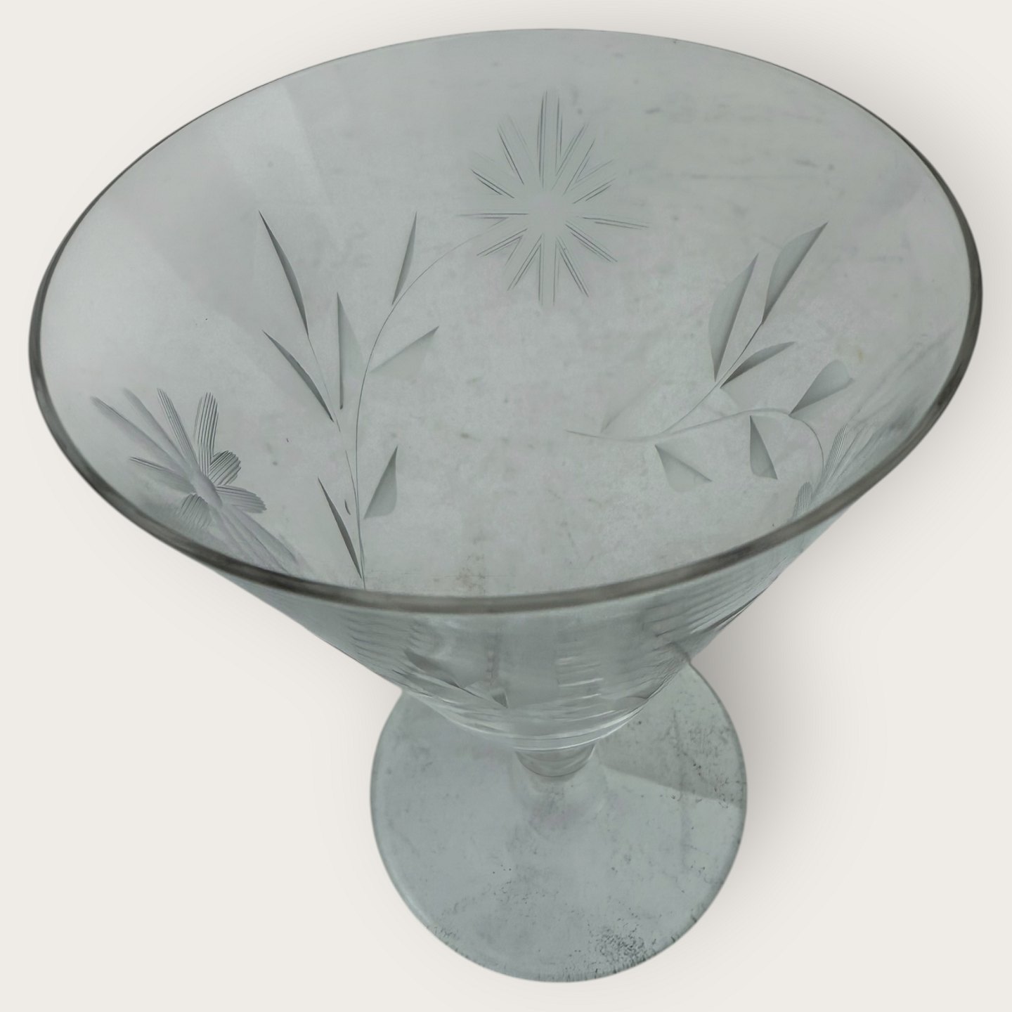 Rødvinsglas med blomsterslibninger