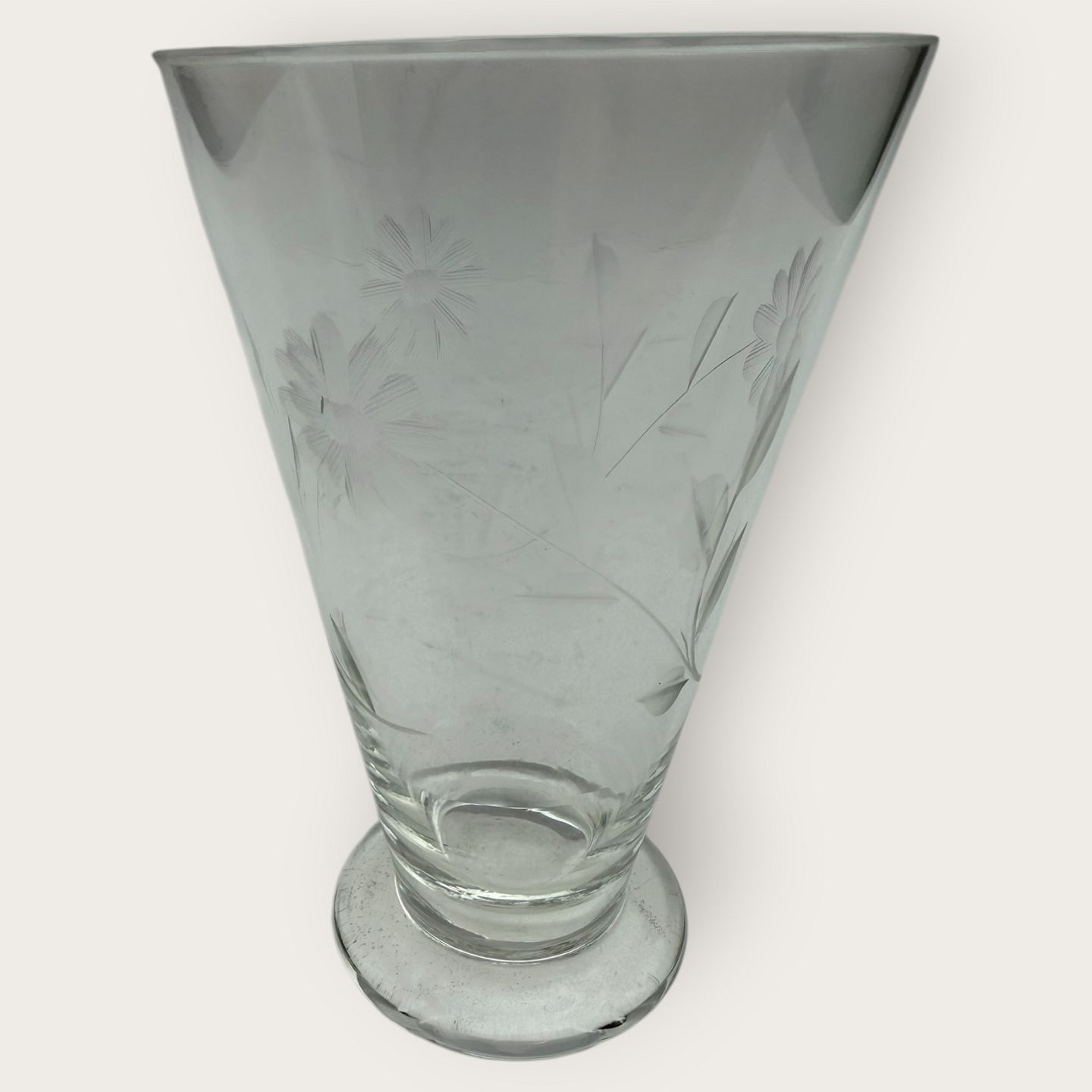 Beskrivelse: Vand / ølglas med blomsterslibninger, Højde 13,5cm, diameter 9cm *pæn stand*