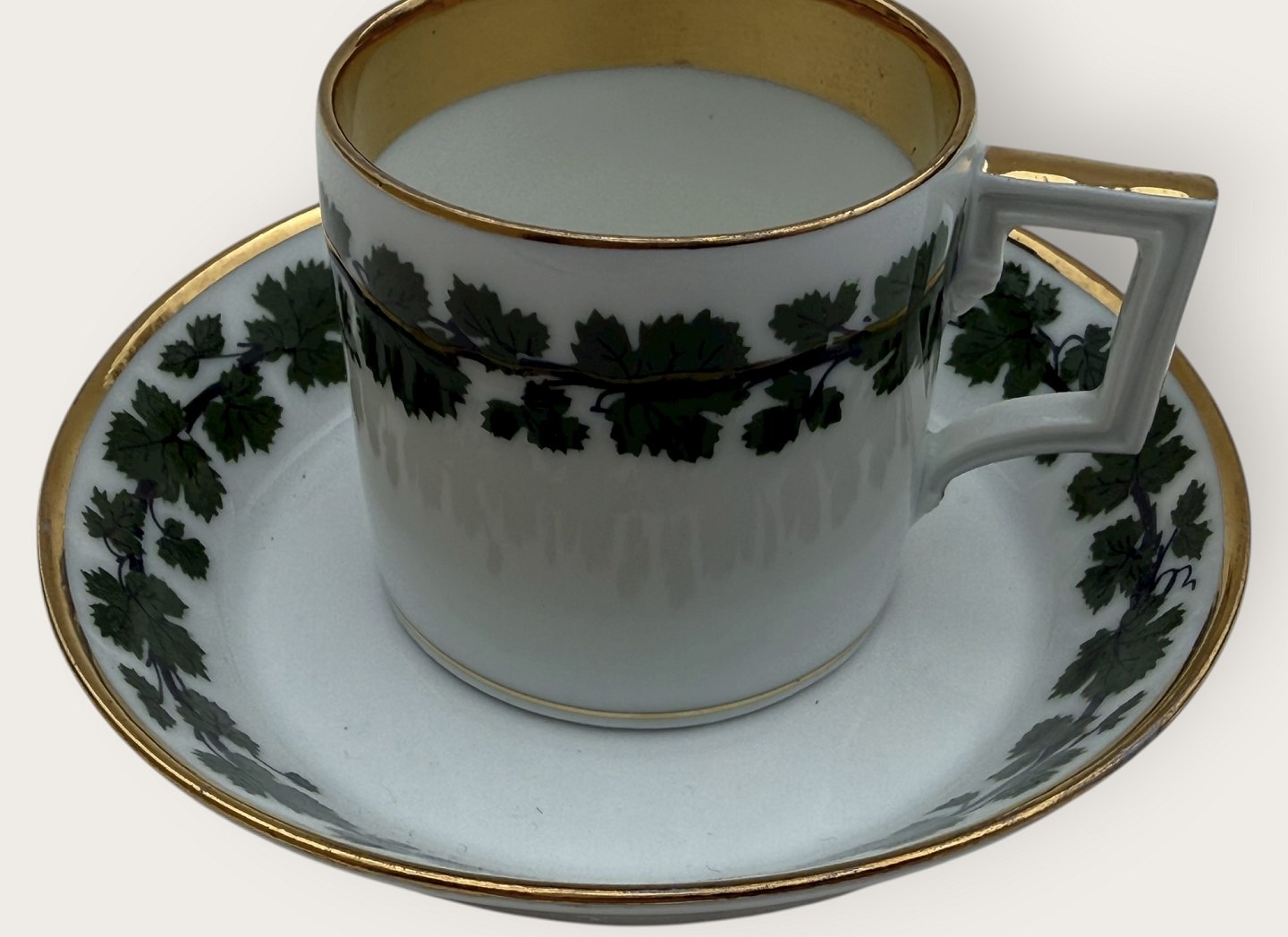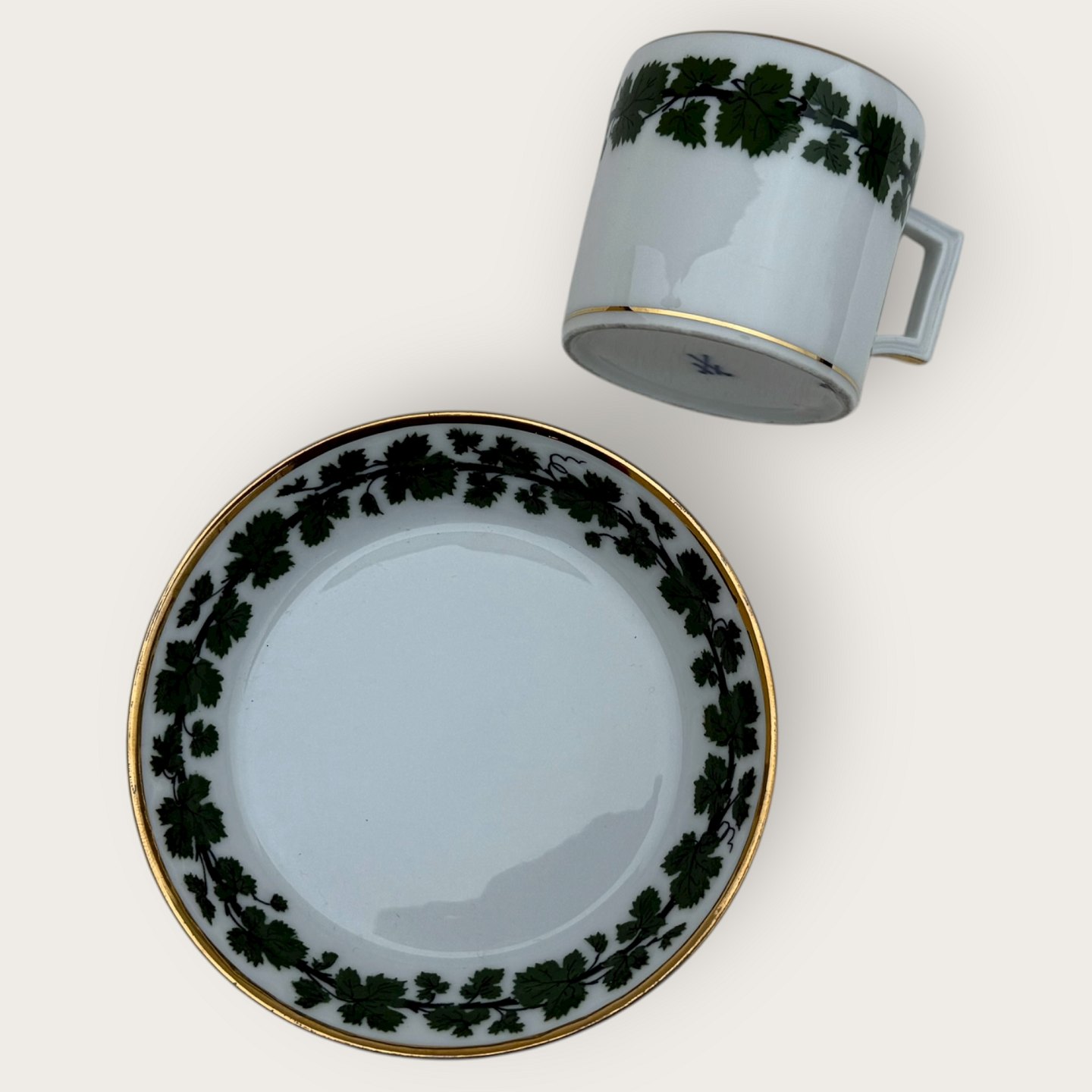 Description: Meissen, Small coffee cup with vine leaves and gold edges, height 5cm, diameter 5cm *fine condition*