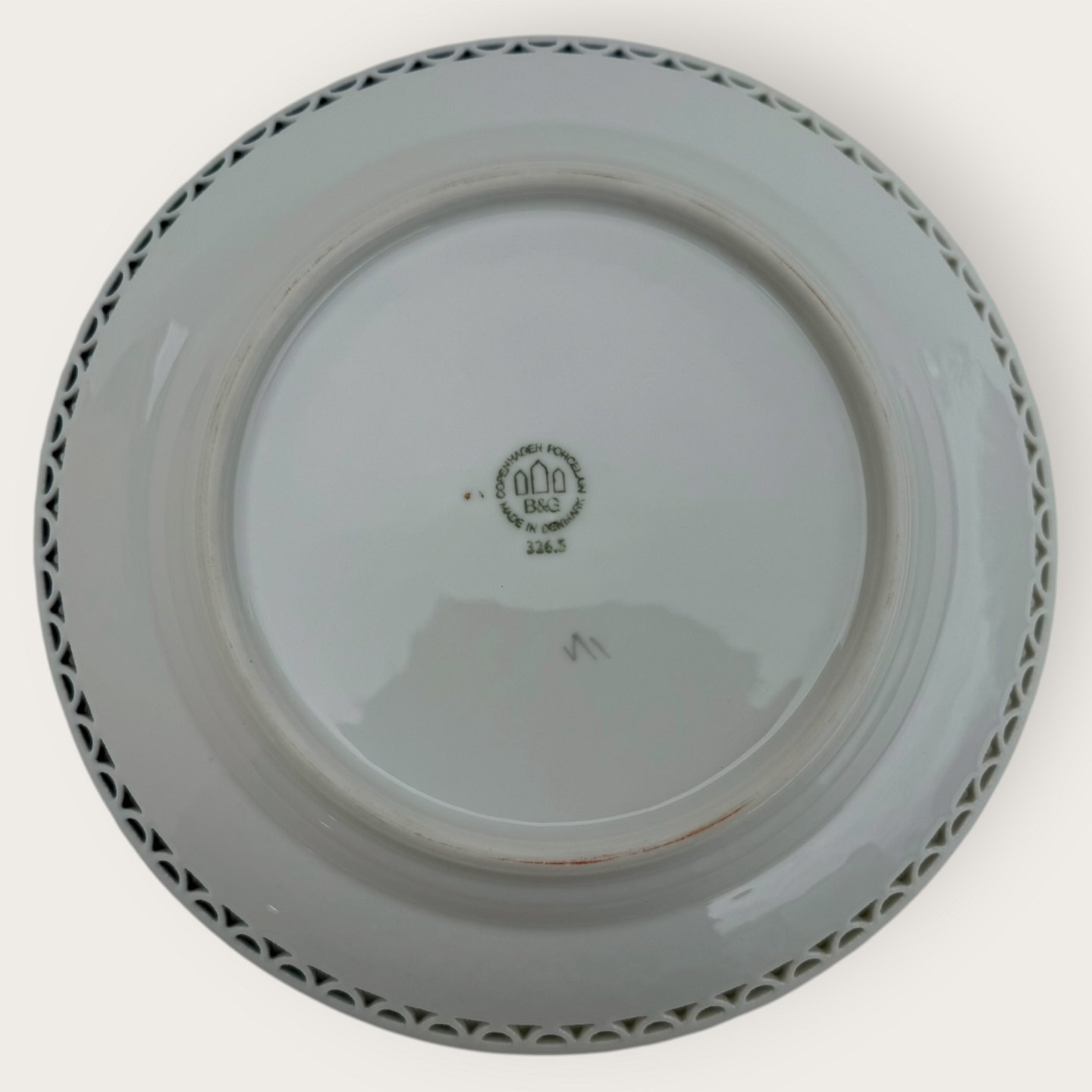 Beskrivelse: Bing & Grøndahl, Måge med guld, Frokost tallerken med gennembrudt kant #326.5, 21,5cm i diameter, Design Fanny Garde *Perfekt stand*