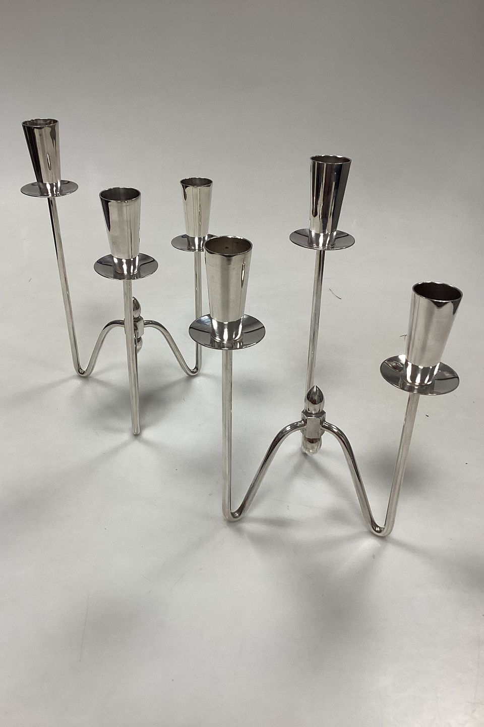 Par trearmede Lysestager i Sølvplet af Johannes Berg